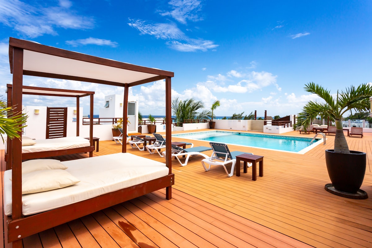 Located on the most beautiful tree-lined street in Playa del Carmen, with incredible cafes, bars, restaurants, local shops, and the beach, this unique + modern 1 bedroom apartment is close to everything, making it easy to plan your visit. Walk to the beach for the day, spend the evening strolling 5th Avenue, or simply enjoy your nautical inspired apartment + private terrace, or head up to your gorgeous rooftop and soak in the spectacular views of the sea while enjoying the bar + pool.