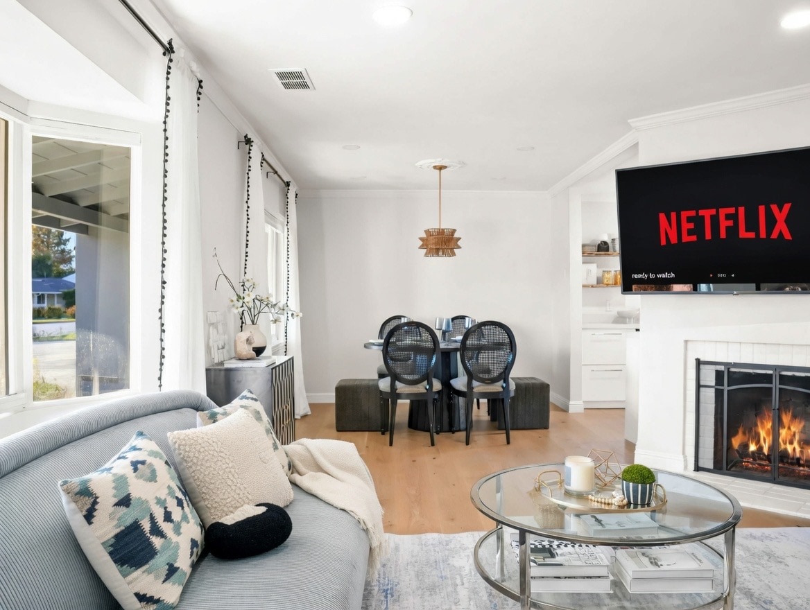 Welcome to your perfect getaway! This stylish and cozy 1-bedroom guest house offers a spacious, open floor plan designed for ultimate comfort and relaxation. Ideal for solo travelers, couples, or small groups, the space is thoughtfully designed with modern furniture, neutral tones, and recessed lighting, creating a warm and inviting atmosphere. The guest house features a queen-sized bed in the sleeping area, with a queen-size sleeper sofa in the living room to accommodate extra guests.