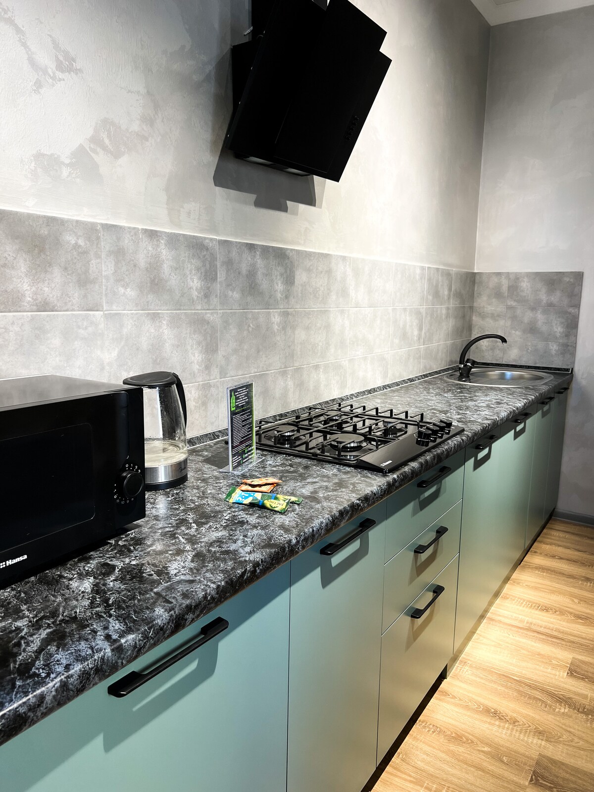 차분하고 세련된 숙소에서 휴식을 취해보세요. 아파트에는 휴식과 편안함을 위한 모든 것이 마련되어 있습니다. 침실에는 인터넷이 구비된 스마트 TV, 편안한 침대, 휴식을 취할 수 있는 추가 소파가 있습니다. 주방에는 전자주전자와 새 냉장고가 빌트인 전자레인지가 준비되어 있으며, 가스레인지를 모두 사용하실 수 있습니다. 욕실에는 세탁기, 헤어드라이어가 마련되어 있습니다. 다리미, 건조기 및 기타 모든 액세서리, 테리 스노우 화이트 타월과 같은 소형 가전제품도 있습니다.