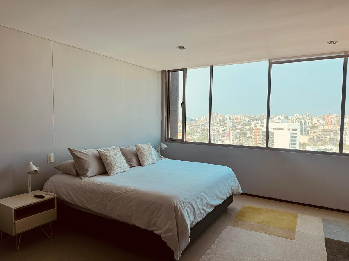 이 아파트는 보스턴 동네의 새 건물에 있습니다. 침실 2개, 욕실 2개, 마그달레나강의 탁월한 전망을 제공합니다. 출장, 의료 방문 또는 휴가를 떠나기에 완벽한 바랑키야 방문 숙소입니다. 편안하고 즐겁고 안전한 숙박에 필요한 모든 것을 갖추고 있습니다. 조용한 지역에 위치하고 있으며, 레스토랑, 쇼핑센터, 도시의 주요 관광지까지 쉽게 이동할 수 있습니다.