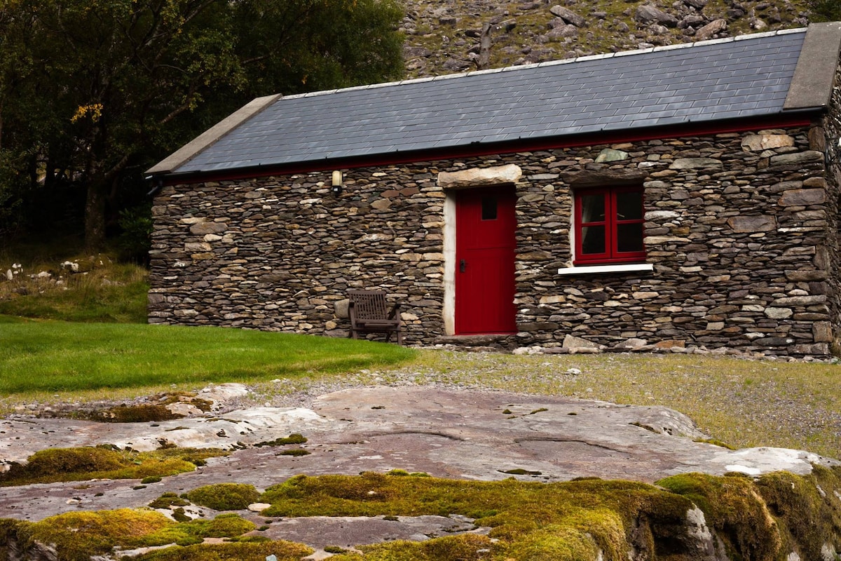 저희 집은 양 목장으로 아일랜드에서 가장 높은 산 아래에 위치해 있으며 맥길리쿠디 릉스 한가운데에 있는 유명한 케리 웨이 산책로에 위치해 있습니다. 원래 건물은 1802년으로 거슬러 올라가며 킬라니 국립공원 가장자리에 위치한 아일랜드에서 가장 자연 그대로의 계곡 중 한 곳에 위치해 있어 아일랜드에서 가장 늦게 전기를 공급받은 곳 중 하나입니다. 켄마레 & 킬라니 마을은 차로 1시간 거리에 있지만, 코티지는 모든 것에서 벗어나고 싶은 사람들에게 적합합니다...