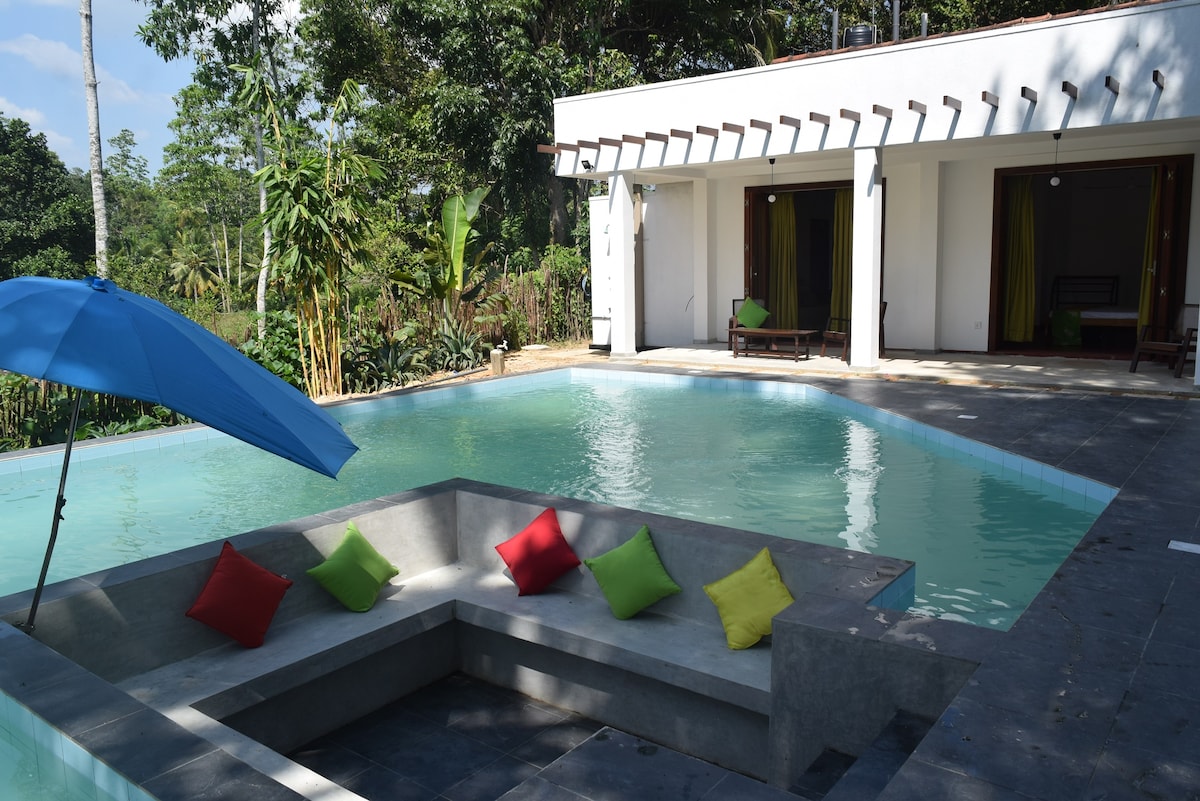Relax with the whole family at this peaceful place to stay. have a tow separate room in cluded delicious food, swimming pool, nice garden,have a big roof top ,Woking distance from coconut hill mirissa, 1 hour is go to the gall,2 minutes to the mirissa beach ⛱️,.Two minutes walking distance from the main road to the middle of jungle 2 minutes go to the turtles beach.