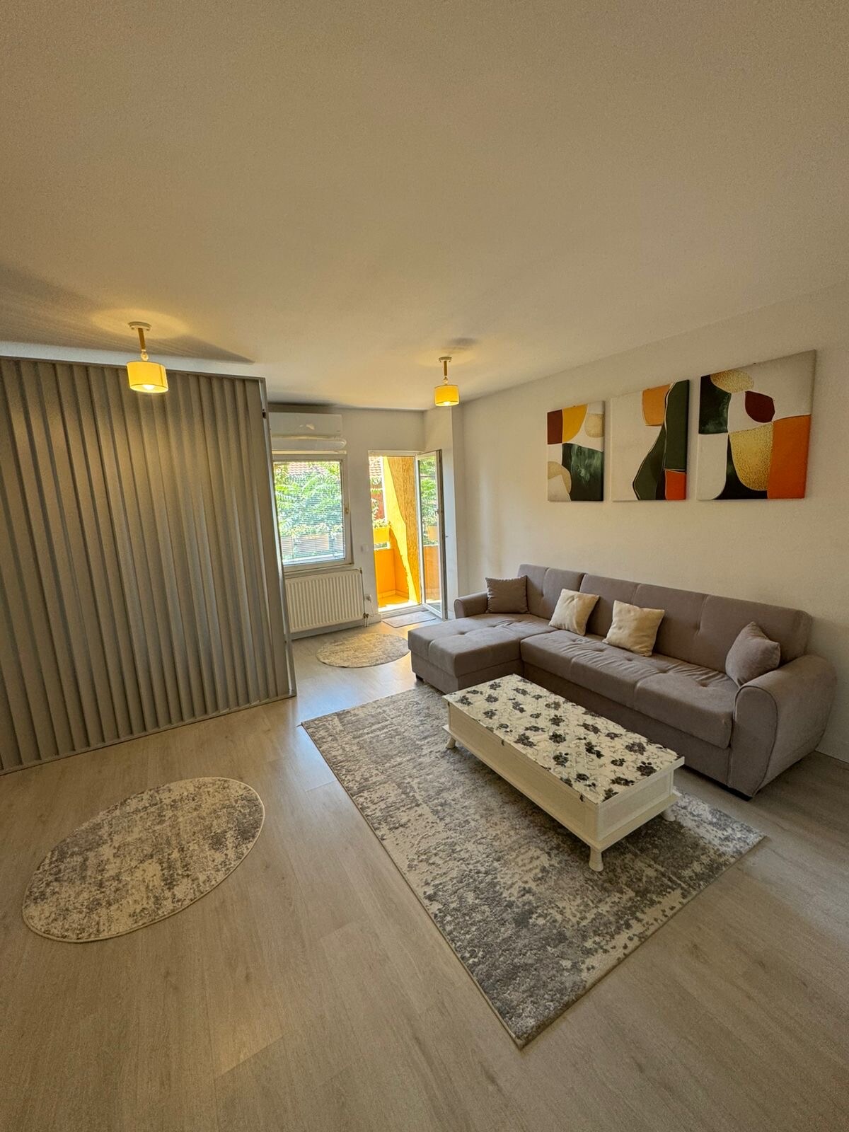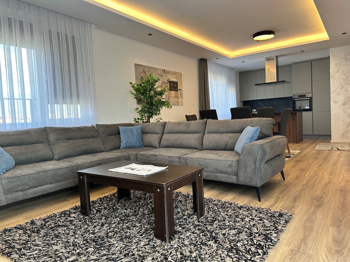 The super apartment boasts a luxurious and modern design.Its prime location offers breathtaking wiews and convenient access to amenities,15 minuts away from the center on foot ,BUS stop right in front of the apartment-center and very near has market two step Kitchen has all the elements.The living areas are designed for comfort,with carefully chosen furnishing and abundant natural light.The apartment featurestwo spacious balconies,a living room,a kitchen with all elemets two bedroom,a bathroom.