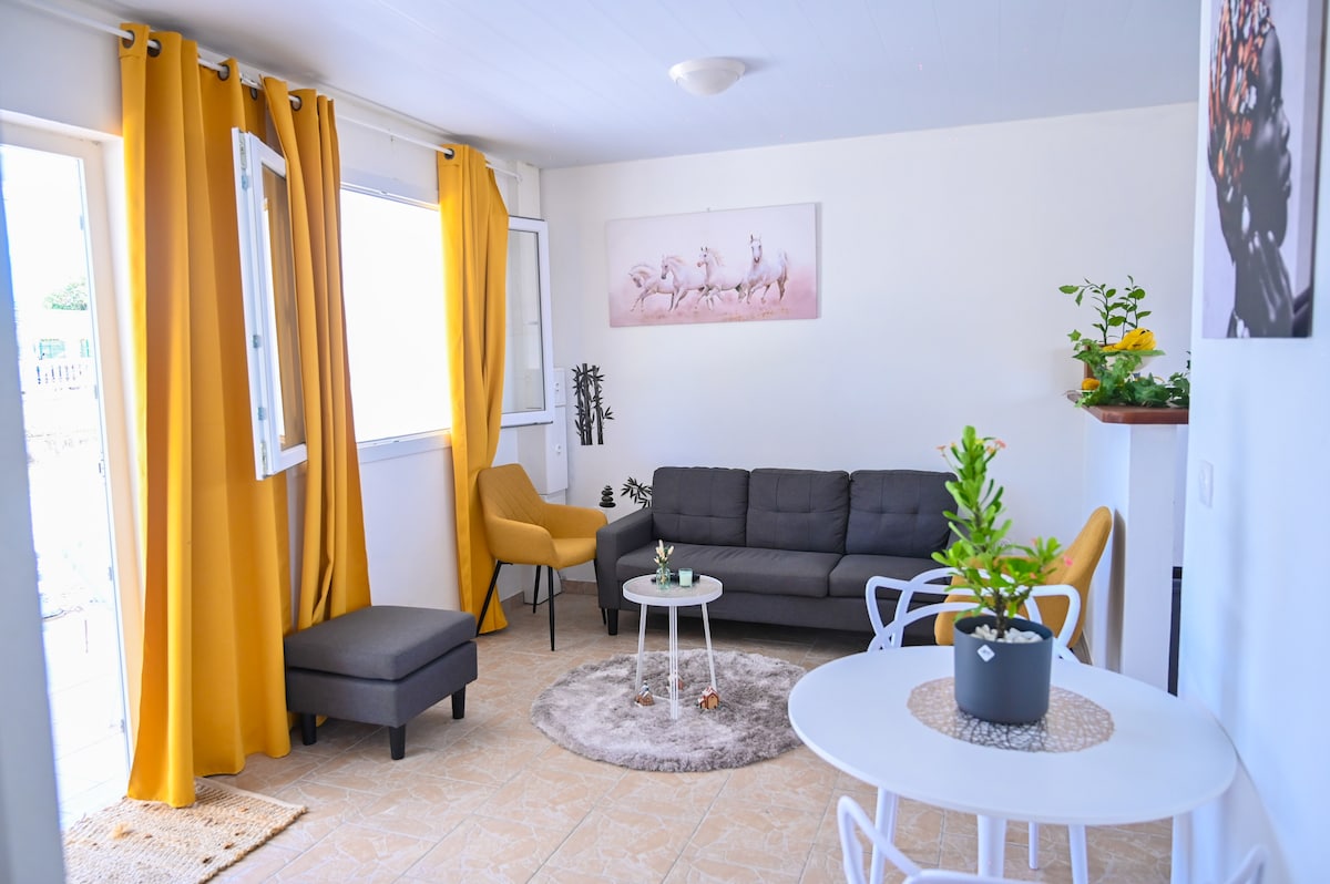 Laissez-vous séduire par cet adorable hébergement, Vous serez les premiers à ėxtrenner cette belle estudio. Cuisine équipée, Terrasse avec table, chaises, salon de jardin et hamac. Le point fort, quartier calme et proche des plus belle plage de Remire. Sentiers des randonnée à proximité, marche et boulangerie a côté....+ d'eau chaude et wifi