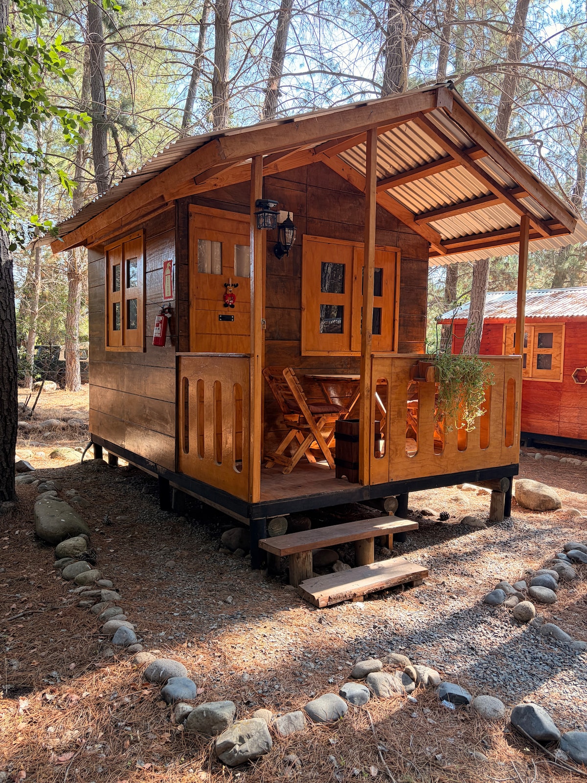 <b>Aviso Importante: las mini habitaciones NO tienen baño interior.</b> Los baños privados + duchas con agua caliente están a solo 30 m en zona exclusiva. Incluye: Excelente ubicación - habitación cerrada con camarote - velador y enchufes - Baño privado de uso exclusivo - Quincho, zona fumadores - Acceso directo al Río Claro - Wifi Starlink - Estacionamiento y cámaras de seguridad Glamping tranquilo en plena naturaleza.