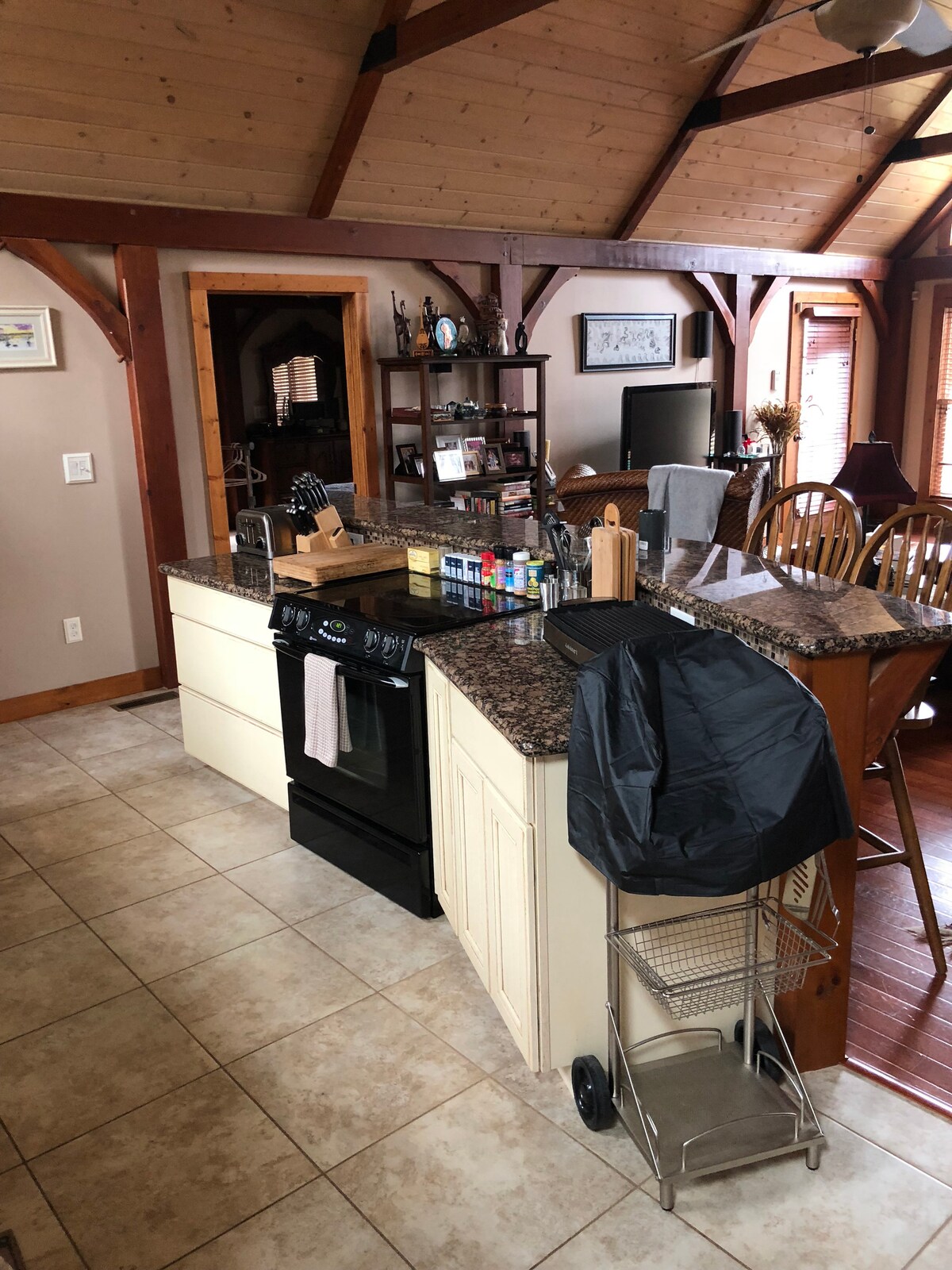 도시와 가장 가까운 곳에서 시골의 최고의 매력을 즐겨보세요. 해외에서 경력을 쌓은 후 고향으로 돌아온 후 산장 휴양지로 집을 설계하고 지었습니다. 좋은 사람들과 공유하는 것을 좋아합니다. 녹색 켄터키 초원이 내려다보이는 베란다에서 전망을 즐기세요. 숙소에서 훈련을 받은 반려견을 환영하지만, 반려견을 동반할 계획이라고 예약 요청에 반드시 명시해야 합니다! 뒷마당은 울타리로 둘러싸여 있으며, 현관 둘레를 감싸는 넓은 공간으로 이어지는 문이 있습니다.
