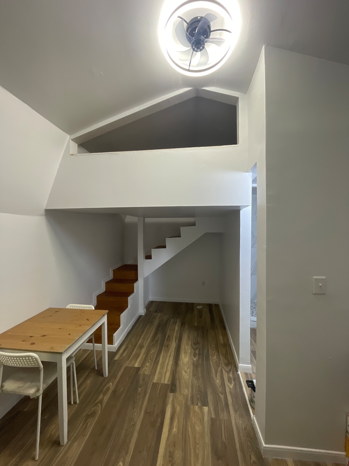 Private guest suite with private entrance and bathroom. Clerestory windows provide abundant daylight. Loft style sleeping arrangements with queen size bed. Additional sleeping space on full size sleeper sofa. 42" TV with antenna and Roku Streaming. Kitchenette with fridge, coffee, microwave, and induction cooktop. European style bathroom with curbless shower and wall hung toilet. Tankless water heater for unlimited hot water.