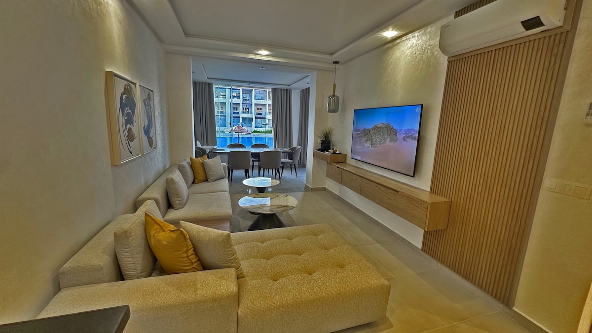 Appartement lumineux à Cabo Negro, résidence Cabo Huerto, à 2 min des plages et restaurants (Cappuccino). Au 3ᵉ étage, profitez d’une grande terrasse avec vue panoramique montagnes & piscines. Suite parentale avec vidéoprojecteur, 2 salles de bain, grand salon ouvert, cuisine équipée. Résidence premium : piscines adultes/enfants, salle de sport, club kids, parking gratuit & borne électrique. Idéal familles, résidence sécurisée 24/7, TV internationale avec films & séries illimités.