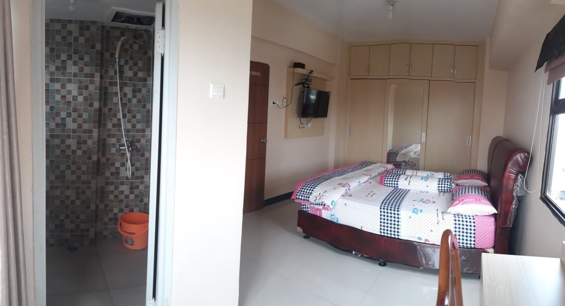 Stay comfort in a warm studio room with nice city view and the lagoon beside. Completed with kitchen set, queen bed size and working space with unlimited wifi access, your stay will feel like home. Enjoy various facilities: swimming pool, kids play area, gym, shopping mall, cinema and various restaurants. For health and safety reason to all of the guest, this apartement is cleaned with antiseptic and desinfectant before check-in.