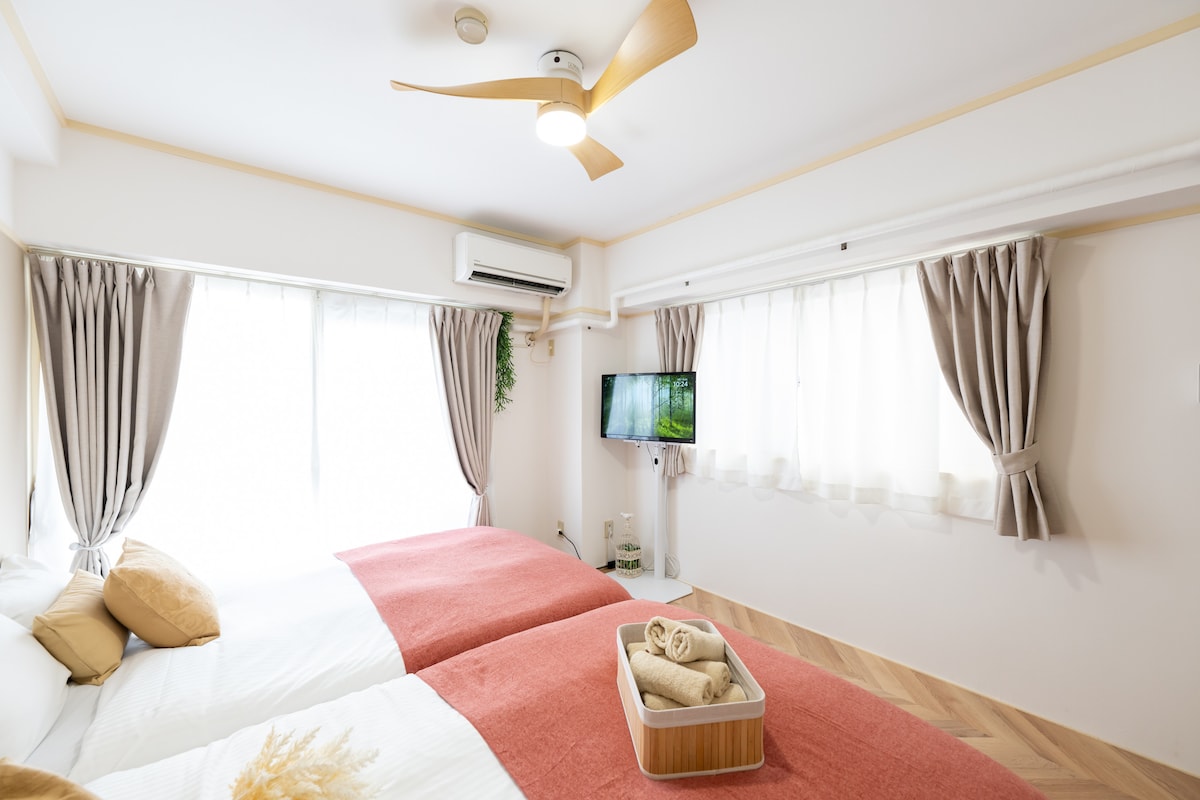 三軒茶屋は、人気の渋谷から電車で2駅・わずか4分。新宿・銀座・六本木など、東京の主要エリアへのアクセスもスムーズで、観光にもビジネスにも最適な立地です。 【お部屋について】 ・2025年8月に全部屋リフォーム完了 ・広さ:42㎡/1LDK ・定員:最大5名 【お部屋の構成】 寝室(ダブルベッド×2) リビングルーム(ベッドにもなるソファ×1) ワークスペース ダイニングルーム キッチン バスルーム 洗面台 トイレ ベランダ お一人様からご家族・グループまで、さまざまなご滞在スタイルに対応 【快適な滞在をサポートする設備】 ・リネンサプライ業者による高品質なシーツとタオルをご用意 ・遮光カーテン完備で、快適な睡眠環境を実現 ・ワークスペースとFree-Wifi付きで、リモートワークにも対応 【周辺環境】 ・静かで閑静な住宅街 ・徒歩圏内に大型スーパーマーケットが3つ ・コンビニ、薬局、郵便局、100円ショップ ・飲食店やテイクアウト店が充実、長期滞在にも便利 三軒茶屋は都会の便利さと下町情緒とが共存する、住みやすく人気の街です。皆さまの快適な滞在をサポートいたします。