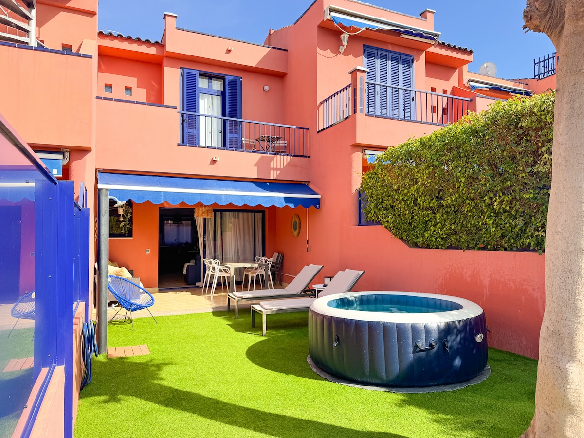 Relájate y desconecta en un espacio tranquilo, luminoso y acogedor. Nuestra casa está ubicada en Pasito Blanco, una de las más exclusivas zonas de la isla de Gran Canaria, equipado con todo lo esencial. La playa, piscina y un pequeño supermercado están a 5 minutos a pie. Compartir momentos con tu familia y amigos en la terraza y jardín privados harán de tus vacaciones un sueño.
