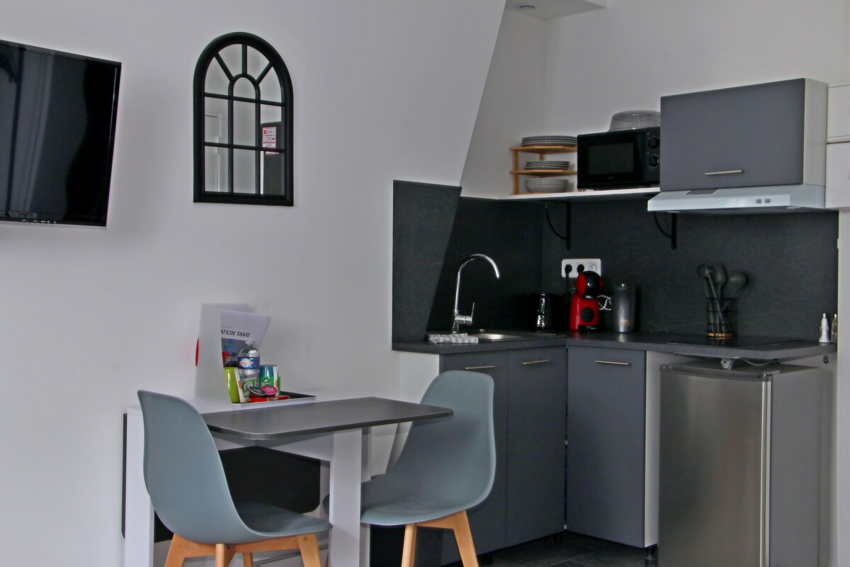 Dans une résidence privée studio indépendant refait à neuf . Vous aurez tout le confort que vous avez chez vous . Cuisine entièrement équipée , machine à laver même internet . Vous aurez un pass pour le portail électrique et votre véhicule sera en sécurité dans un parking entièrement clos . Vous serez à quelques minutes du centre et de la gare sncf .