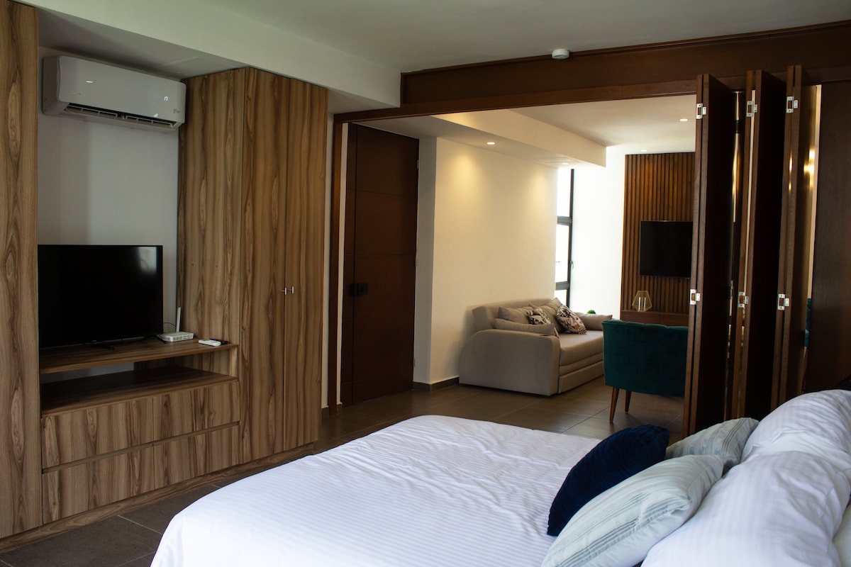 Bienvenido a tu refugio en Temozón Norte, una de las zonas de mayor crecimiento en Mérida, que aún conserva su tranquilidad y entorno natural. Nuestro departamento de una habitación es ideal para descansar y disfrutar: cuenta con cama king size, closet, baño privado y un cómodo sofá cama matrimonial en la sala para huéspedes adicionales. Disfruta de tu propia piscina privada en la terraza o aprovecha las amenidades del edificio como el gimnasio, piscina común, pet park y salón de eventos.
