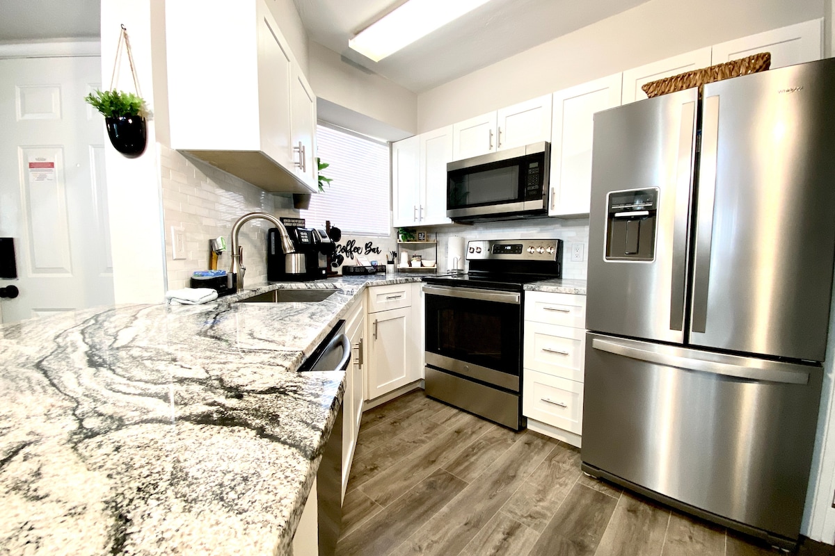아늑한 비치 콘도•킹사이즈 침대•해변까지 반 마일!