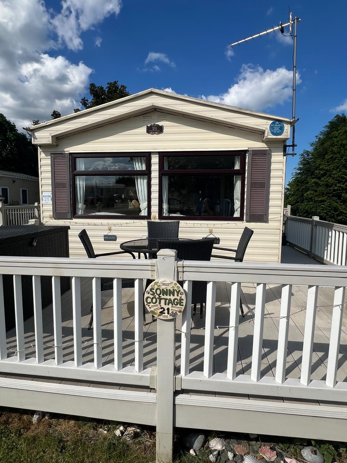 Moments from the beach our holiday home is a cosy, well equipped, 3 bedroomed 35 ft static caravan with leisure decking. Sited in a quiet location on West Mersea's Waldegraves Holiday Park. Beautiful sea views, amazing sunsets and a private garden to unwind and relax in. The Park's facilities/entertainment for families are near at hand. Seafood has been Mersea's speciality since the Roman times. Colchester, a short drive away offers a wide variety of leisure and entertainment venues.