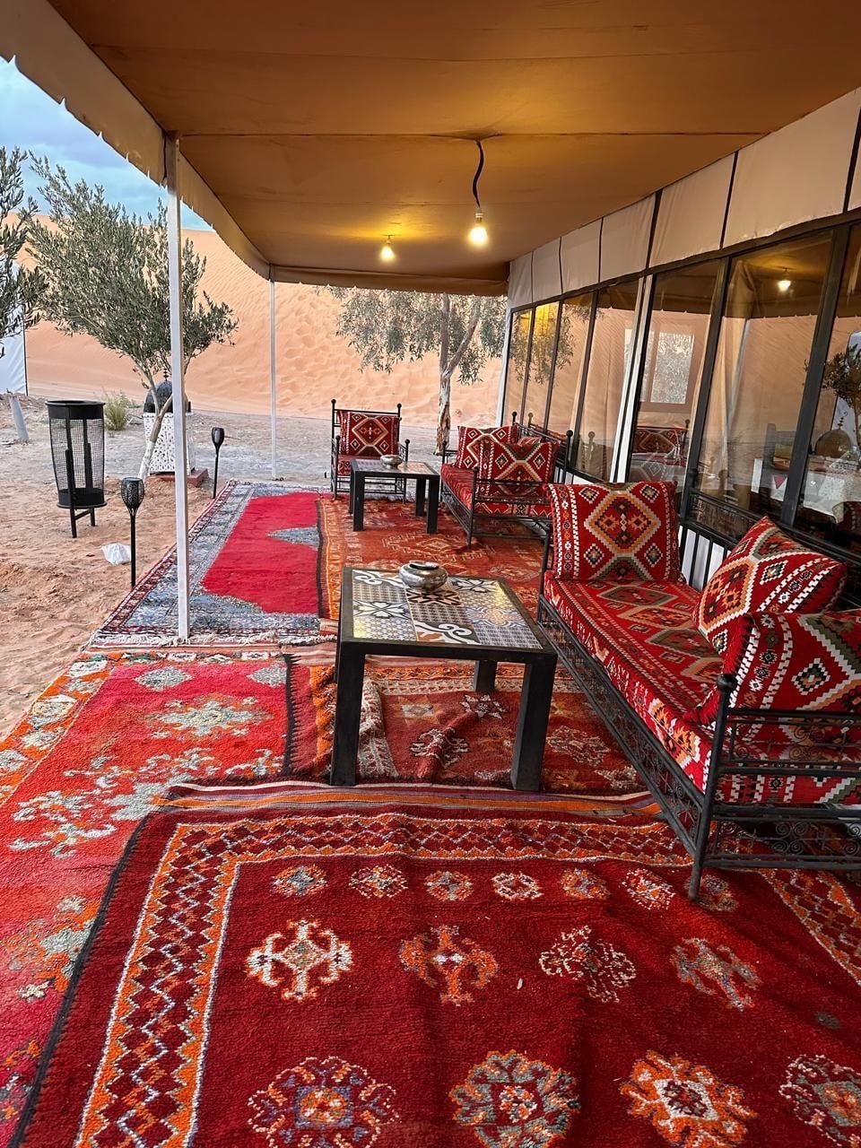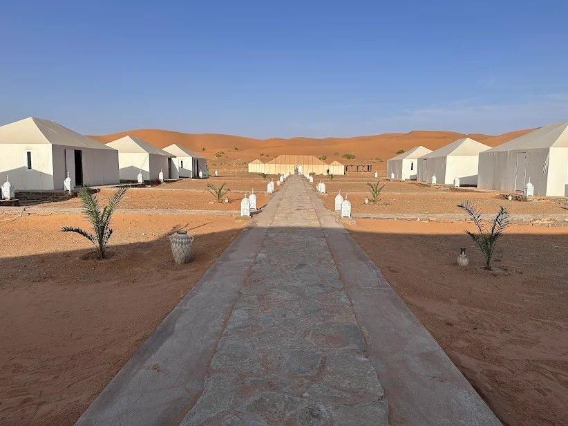 our private camp features a unique detail that sets it apart from the rest. Our tents are outfitted with the finest amenities, including plush bedding, en-suite bathrooms, and beautiful furnishings that blend harmoniously with the natural surroundings. Our expert chefs will craft exquisite meals for you, featuring local flavors, all while accommodating any dietary preferences or restrictions. At night, enjoy a crackling campfire, where you can relax and enjoy the tranquility of the Sahara