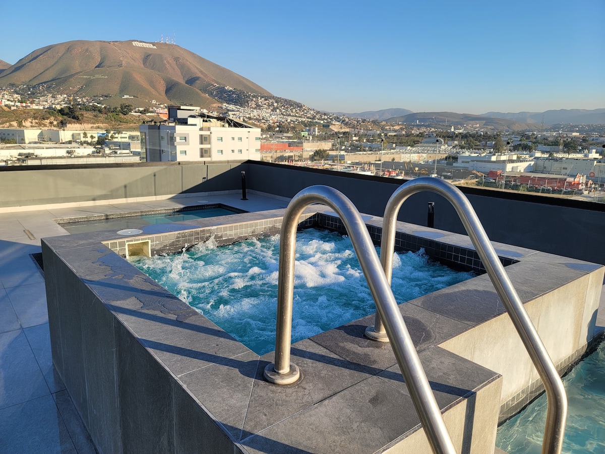 ICON piso 16의 프리미엄 스튜디오에서 티후아나를 위에서 즐겨보세요. 방해받지 않는 전망, 수영장, 자쿠지, 헬스장 및 전용 주차장. 커플, 출장 또는 조용한 숙박에 적합합니다. 조나 리오, 병원, 카페, 영사관에서 몇 분 거리에 있습니다. 연중무휴 보안 및 비대면 체크인.