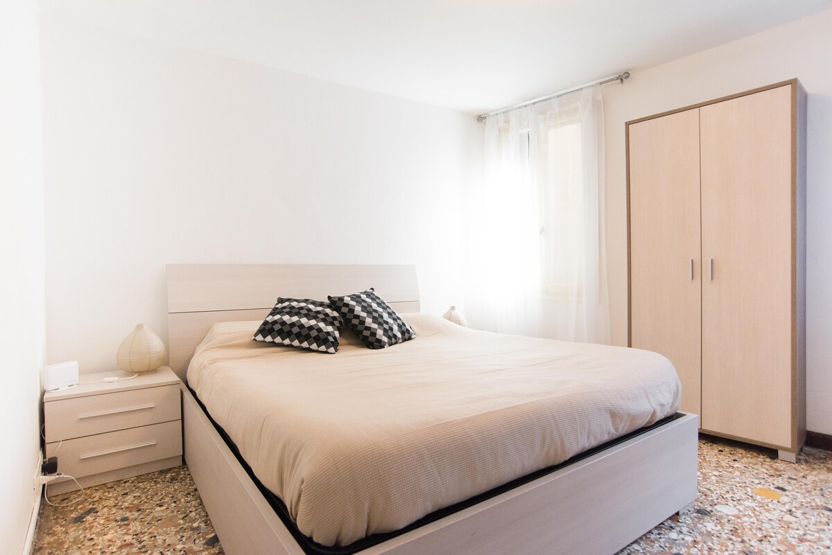 Bright and spacious ground-floor apartment with air conditioning, ideal for friends, colleagues or business stays. Enjoy full privacy thanks to two separate entrances and two independent en-suite bedrooms. The apartment includes a living area with kitchen, sofa bed and double bed, plus a second double bedroom. Just minutes from the train station, with no bridges to cross—a rare convenience in Venice. Well connected by water buses and located in a no high-water area. Fast Wi-Fi.