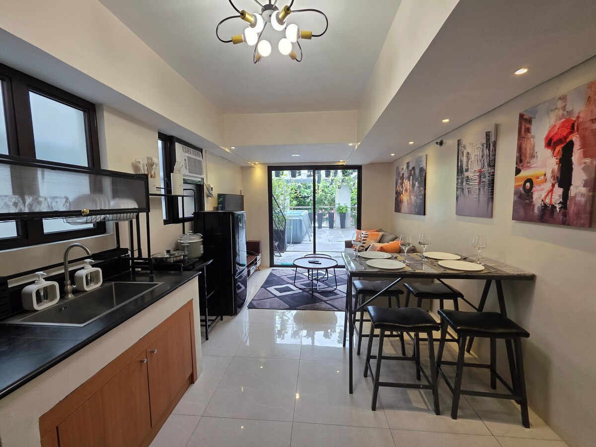 이 멋지고 새로운 숙소는 커플 또는 소규모 가족이 휴식을 취하면서도 모든 것에 가까이 있기에 이상적입니다. 홈스테이에 필요한 모든 것을 갖추고 있으며 옥상 데크에 시원한 물놀이를 즐길 수 있는 플런지 풀도 마련되어 있습니다. 현대적인 가구와 편의시설에는 필리핀 전통 스타일도 포함되어 있습니다. 고층 콘도 건물에서 멀리 떨어진 전통적인 필리핀 동네에 위치하고 있지만 쇼핑몰과 비즈니스 지구에서 가깝습니다. 필리핀에서 즐거운 시간 보내시기 바랍니다.