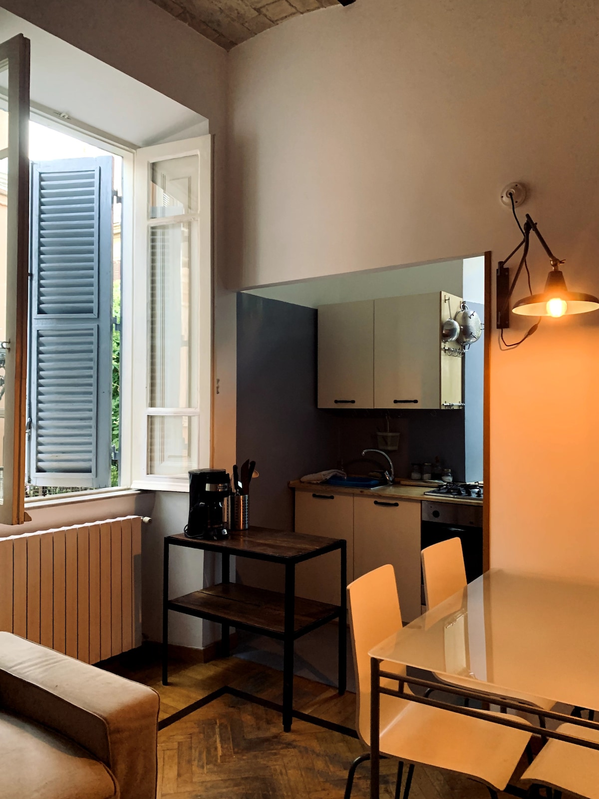 This beautiful bright and exclusive top floor is the apartment-studio of a Roman art collector. It is located on the 1st floor of a typical building situated in a quiet street just right in the heart of Rome only walking distance from Vatican and the main attractions of the city. It was recently renovated and has all the amenities needed for a perfect stay. The strategic location taken to create a cozy and hospitable atmosphere, make this apartment the ideal starting point for a pleasant stay in Rome. The terrace is fully furnished and offers a quiet and pleasant atmosphere away from the noise This beautiful bright and exclusive top floor is the apartment-studio of a Roman art collector. It is located on the 1st floor of a typical building situated in a quiet street just right in Trastevere only walking distance from Vatican, Piazza Navona and Campo de Fiori. It was designed by an architect with great care and decorated in a modern style by the owner, also works of contemporary art create a unique ambience and a pleasant atmosphere. The apartment consists of a large living room with skylight, a fully equipped kitchen, a double bedroom, a large bathroom, a beautiful terrace and a own parking. The private terrace is furnished with a gazebo, table and seats, sofa and barbecue corner and offers a quiet and pleasant atmosphere between the buildings away from the noise of typical Roman buildings, was recently renovated and has all the amenities needed for a perfect stay.It's strategic location and the care taken to create a cozy and hospitable atmosphere, make this apartment the ideal starting point for a pleasant stay in Rome. Ideal for 2/4 people, 2 people in the bedroom and 2 people on the sofa beds in the living room. Free wi fi available in all areas, terrace included. Free private parking. The terrace is furnished with a gazebo, table and seats, sofa and barbecue corner and offers a quiet and pleasant atmosphere between the buildings away from the noise of typical Roman buildings.Free private parking. The owner will not be present in the house during your stay but it will be at your disposal for any question or information you can contact them by phone. Check-in 14:00 – 24:00. If necessary, if the accommodation is vacant, it might be possible for you to check-in at an earlier time or deposit your luggage and come back at 14:00. Check-out is by 10:00. If necessary, if the accommodation is vacant, it might be possible for you to check-out at later time or deposit your luggage and come back at different time. Situated 100m from the Tiber, the home is a 5-minute walk to Vatican City, and to hip, vibrant Trastevere with its fascinating bohemian atmosphere. Explore the area’s foodie hotspots, quiet alleyways, street performers, and thriving nightlife. How to reach me: From Fiumicino Airport Leonardo da Vinci the connection is guaranteed by the LEONARDO EXPRESS train with departures scheduled every 15 minutes to TERMINI station. The travel time is estimated at just 40 minutes, train ticket cost €12, or by the FL1 train with departures scheduled every 15 minutes from TRASTEVERE station. The travel time is estimated at just 27 minutes, ticket price is €8. By car can be reached in 30 minutes.The cost of the official white taxi is fixed rate of € 48. From Ciampino Airport G.B. Pastine there are several companies that connect the airport to Termini Station. The ticket price ranges from euro 4 to euro 8 for single travel time is estimated at 40 minutes. By car it is 30 minutes.The official white taxi cost is fixed rate of € 30. From Termini Station easily accessible by bus line 40 (direction TRASPONTINA/CONCILIAZIONE) for 5 stops and get off at the stop CHIESA NUOVA, just walk for 700 mt.Bus ticket cost €1,50. From Trastevere Station easily accessible by tram line 8 (direction VENEZIA) for 6 stops and get off at the stop BELLI, just walk for 950 mt.Bus ticket cost €1,50.
