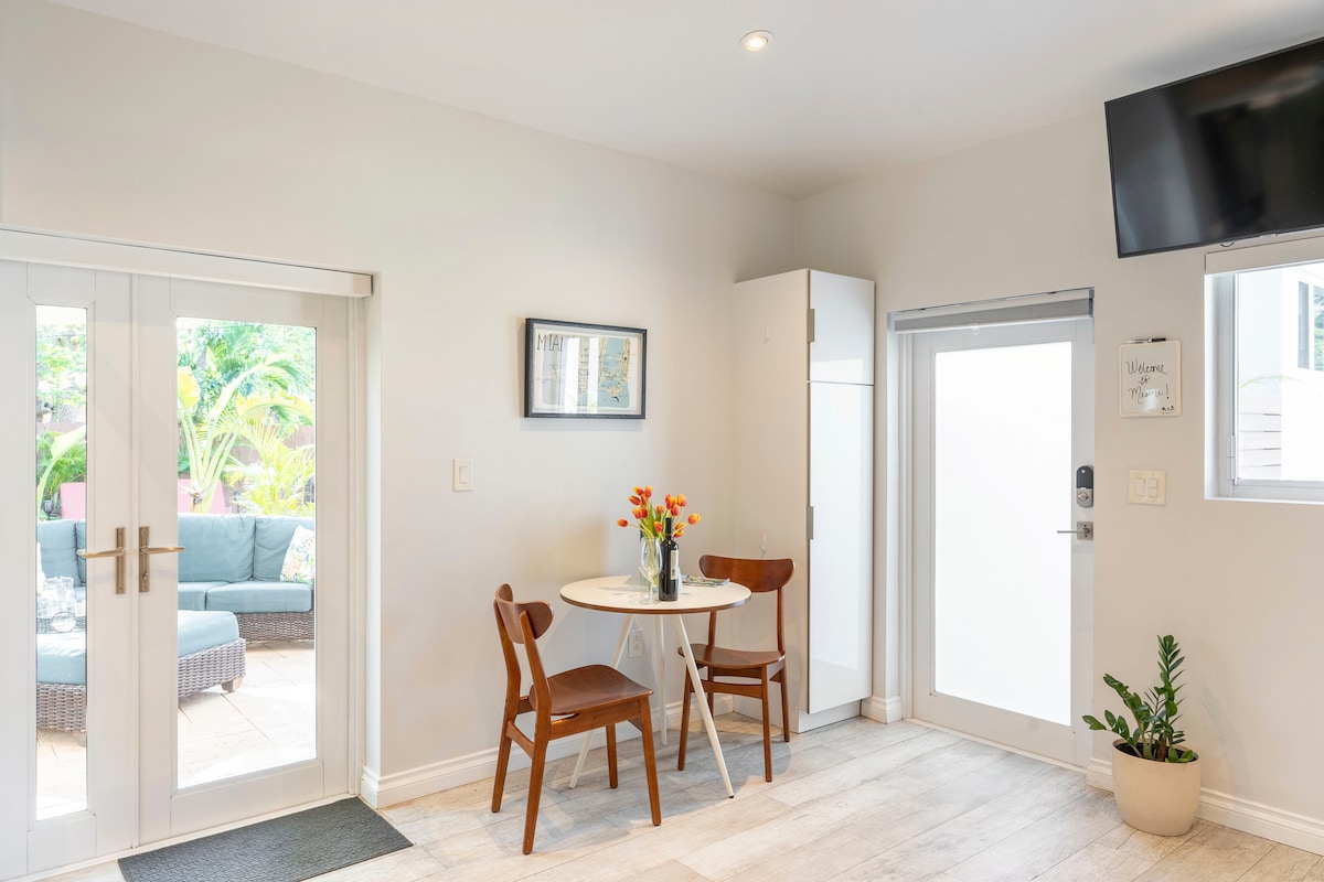 전용 출입구와 정원 전망을 갖춘 프라이빗하고 평화로운 스튜디오. 본관에서 분리되어 있으며, 편안하고 조용하며 모든 필수 편의시설을 제공합니다. 마이애미를 둘러보기에 완벽한 거점입니다. 사우스 비치, 윈우드, 다운타운까지 15분 거리입니다. 근처에 훌륭한 현지 레스토랑이 있는 안전하고 친절한 동네에 있습니다. 휴식을 취하고 재충전할 수 있는 아늑하고 편리한 휴양지입니다.