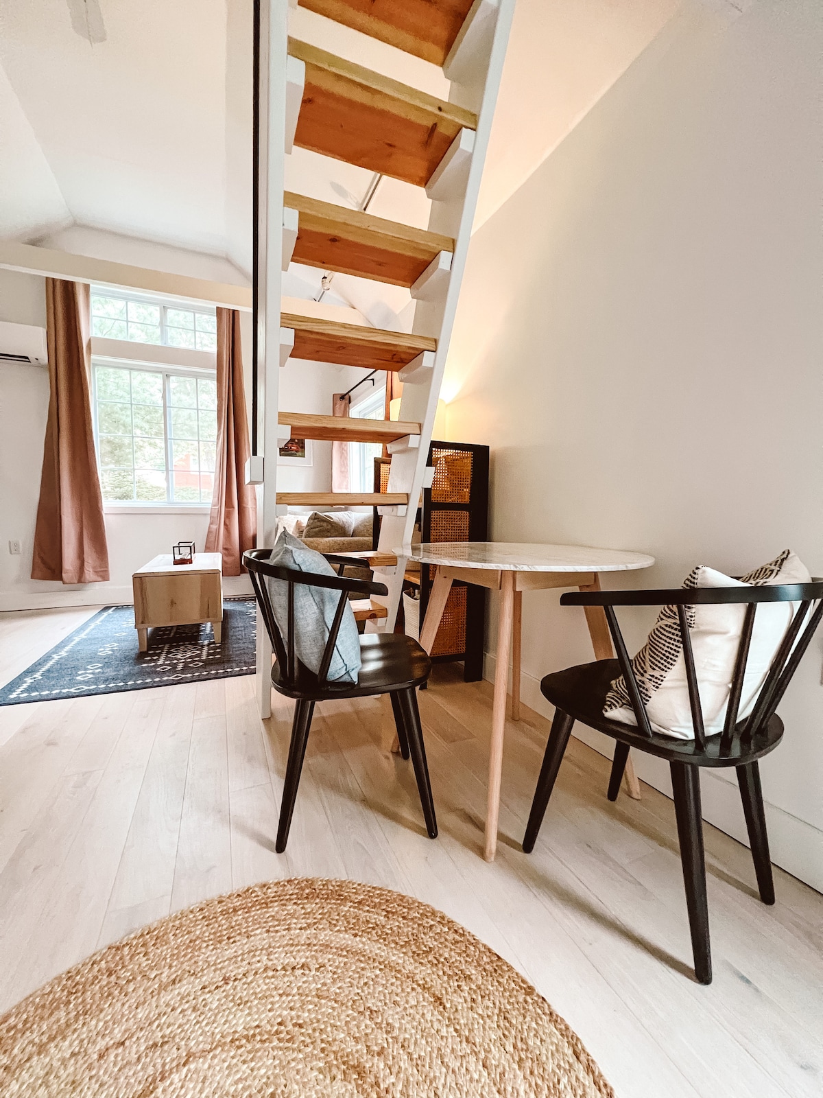 인체공학적 폼 매트리스가 장착된 추가 옵션 풀 아웃 소파가 있는 로프트 베드 공간. 이 공간에는 에어컨과 난방 시설, 놀라운 자연 채광이 있습니다. 레인 샤워기가 있는 새로운 욕실! 미니 냉장고, 별도의 냉동고 공간, 오븐, 스토브, 커피/차 용품이 완비된 주방. 브런즈윅의 중심에 위치하고 있으며 조용합니다! 보우딘 휘티어 필드 바로 맞은편에 있으며 메인 스트리트까지 도보로 10분 거리입니다.