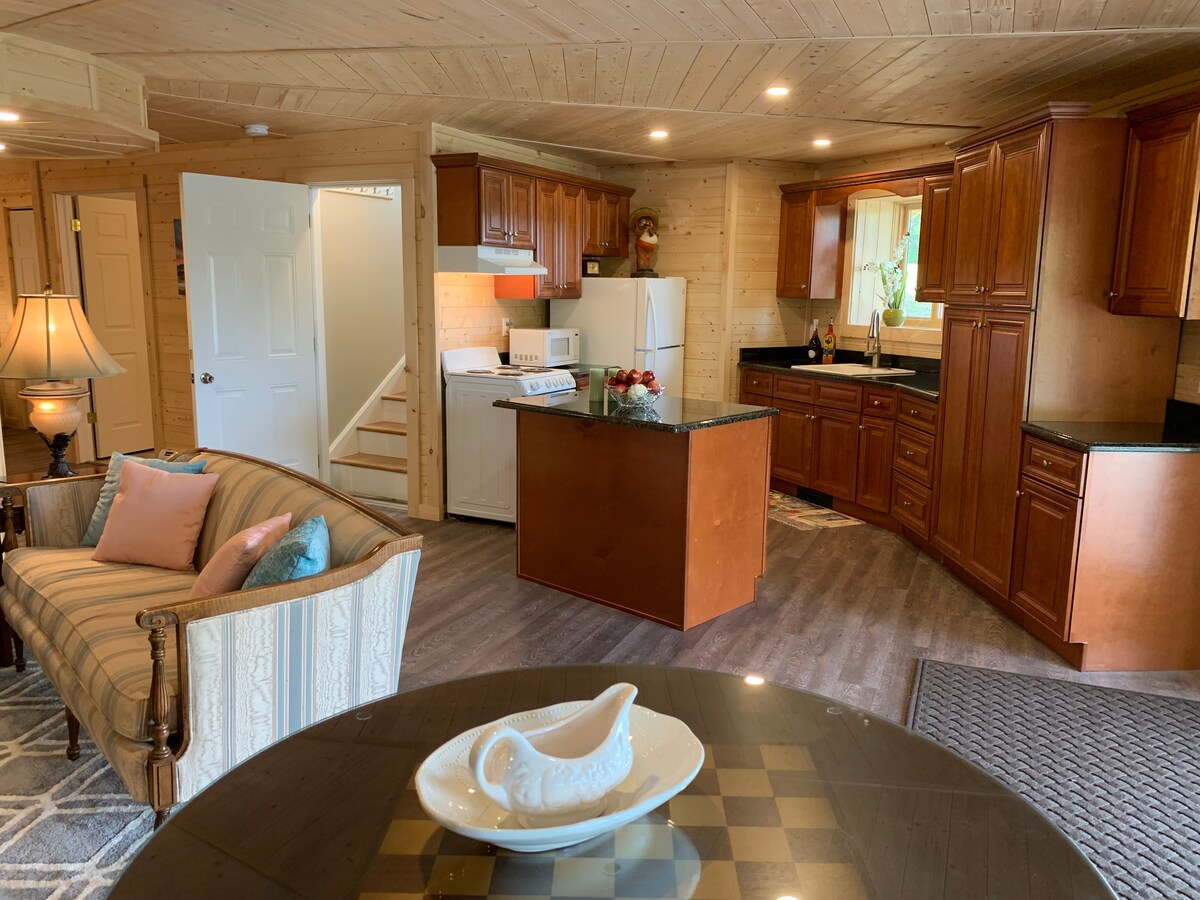 현대적인 통나무 숙소로 터키 수건, 현지 장인의 비누, 부드러운 시트 등 고급스러운 물품이 구비되어 있습니다. 맛있는 인테리어는 산업적인 감각을 가진 mcm 분위기를 가지고 있습니다. 야외에서 산책하고, 수영하고, 개울을 따라가고, 숲으로 들어가고, 하이킹을 하고, 재미있는 도구가 가득한 팬트리가 있는 최첨단 주방에서 저녁 식사를 요리하세요. 벽난로 옆에서 휴식을 취하고, 밖에 앉아 별을 감상하고, 불을 피워보세요. 담요와 나무를 제공합니다. 환영 바구니와 이른 아침을 위한 완비된 커피 바가 기다리고 있습니다.