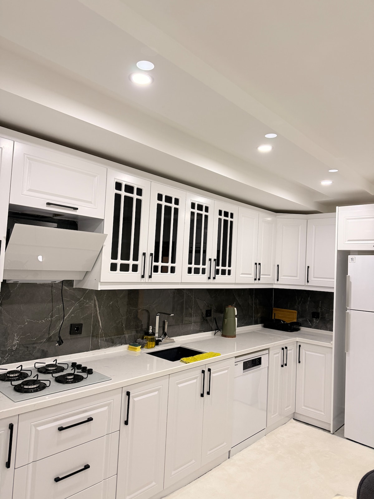저희 아파트는 단지 내 평균 3 +1 160평방미터의 매우 넓은 아파트입니다. 현대적이고 편안한 물품으로 꾸며진 저희 아파트에는 전용 욕실, 에어컨, 와이파이, 안드로이드 TV, 24시간 온수 등 다양한 편의시설이 갖춰져 있습니다. 하루의 피로를 풀 수 있는 이 아파트는 게스트마다 세심하게 청소하고 모든 침구를 교체합니다. 역사적인 미디야트 거리는 차로 8 ~ 9분 거리에 있습니다.