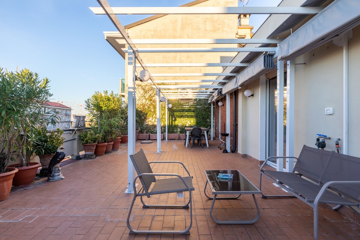 '카사 디 피에르'는 프라다 재단 근처의 엘리베이터가 있는 건물 7층에 위치한 넓은 80평방미터 테라스를 갖춘 화려한 3룸 펜트하우스로, 도심에서 3km 거리에 있으며, 브렌타 지하철 정류장 근처에 있으며, 두오모 광장에서 지하철 5정거장 거리에 있습니다. 자동차로도 쉽게 접근할 수 있는 이 아파트는 더블 침대가 있는 침실 2개와 더블 침대가 있는 소파에 최대 6명까지 수용할 수 있습니다.