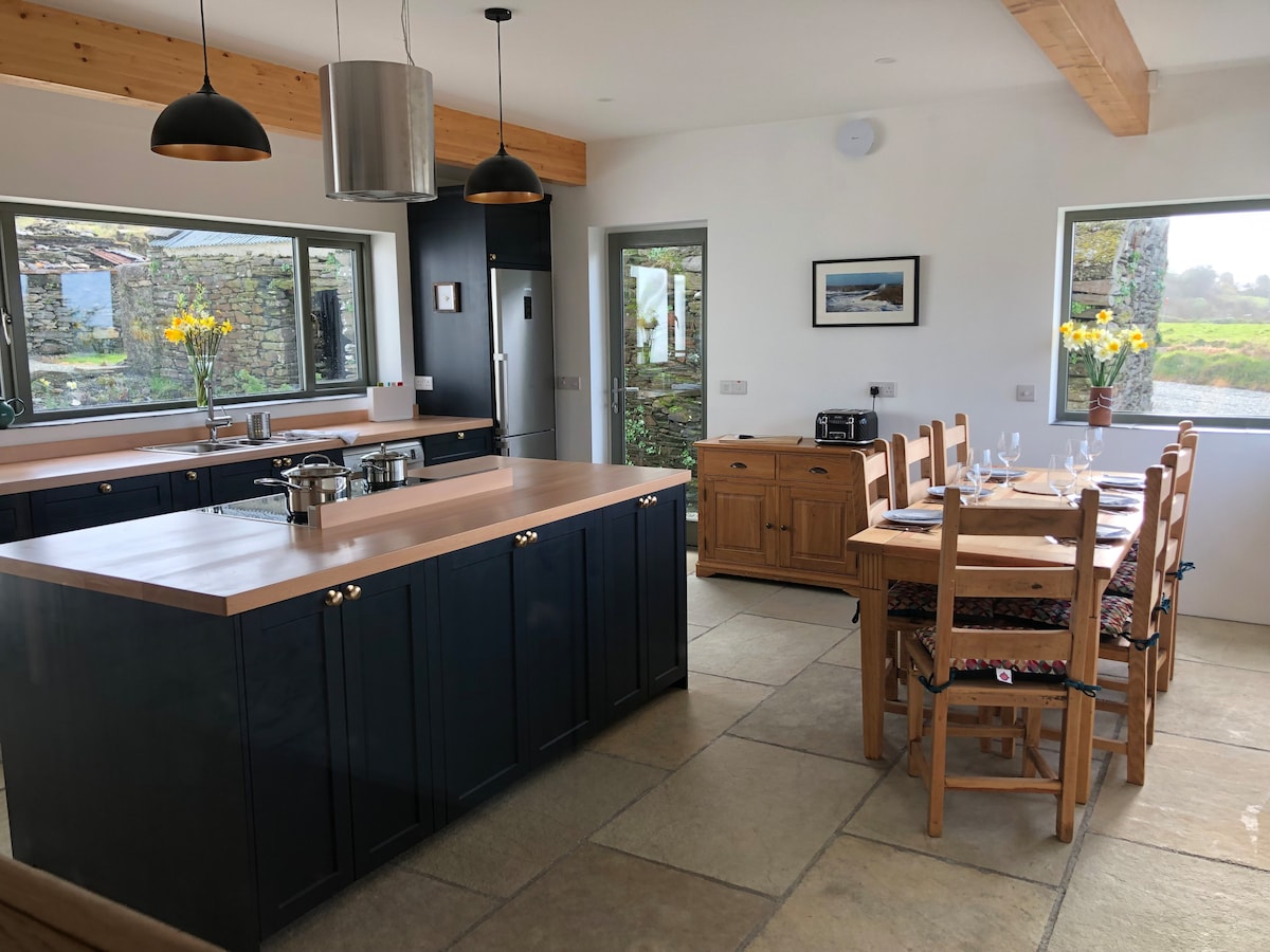 This spacious, bright, modern home has been recently refurbished to a very high standard. It is situated adjacent to Lough Hyne Marine Nature Reserve (less than 1km to the lake) which is one of the most beautiful locations in West Cork. The house and terrace afford stunning views over Lough Nacartan and Knockomogh Hill. The market town of Skibbereen is a short drive (5km) and offers wonderful restaurants, unique shops & cafes and historical walking trails. High speed Wifi (180 Mbps) ✅