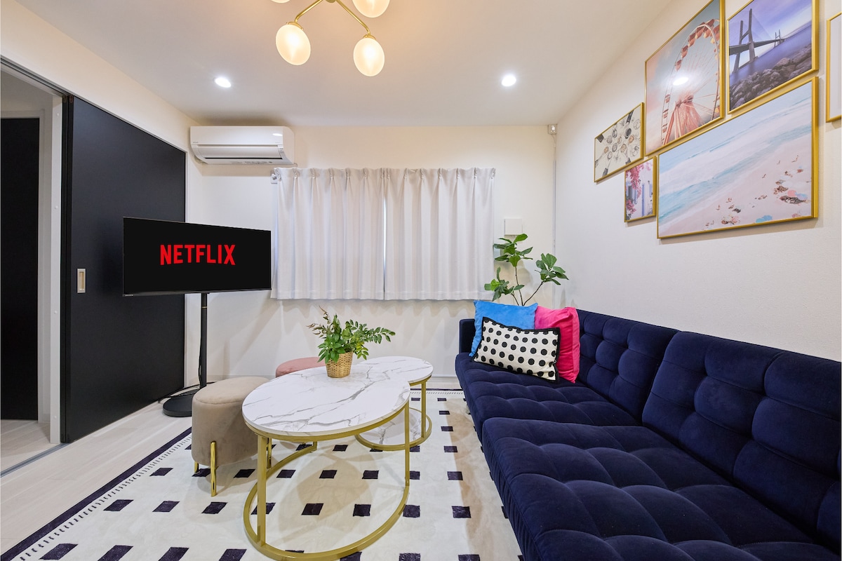 駅徒歩5分/無料自転車2台/難波10分/コンビニ徒歩1分/55’ TV/快適ソファ