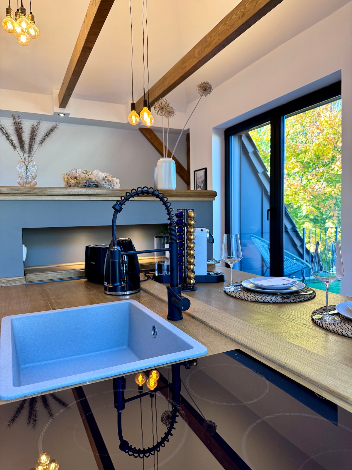 저희 디럭스 아파트는 6명과 함께 즐거운 숙박에 필요한 모든 것을 갖추고 있습니다. - 디자이너 아파트 65평방미터 - 킹사이즈 박스 스프링 침대가 있는 침실 1개 - 킹사이즈 박스 스프링 침대와 소파 베드가 있는 거실 1개 - 거실은 분리할 수 있습니다. - 넷플릭스가 있는 55인치 스마트 TV -네스프레소 커피 - 주차 - 가스레인지, 냉장고, 식기세척기, 전자레인지가 있는 로프트 주방 - 4명이 머물 수 있는 숙소 -현대식 작업 공간 - 고급 침구와 수건 및 샤워 젤