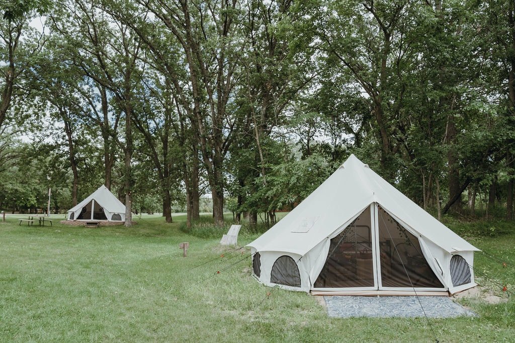 물 위에 자리잡은 저희의 대형 캔버스 텐트는 궁극의 글램핑 경험을 제공합니다! 침대에서 물 너머로 노을을 보거나, 잠에서 깨어나 위에 있는 나무에서 독수리를 보거나, 데크에서 커피 한 잔을 즐기며 펠리컨 무리가 미끄러지는 것을 보는 것을 상상해 보세요. 미니애폴리스에서 서쪽으로 차로 1시간 거리에 있는 실버 레이크 가장자리의 숲속에 위치하고 있습니다. 셀라는 히브리어 음악 용어로 '휴식, 잠시 멈추다'라는 뜻입니다. 자연이 선사하는 아름다움 속에서 잠시 쉬어가세요.