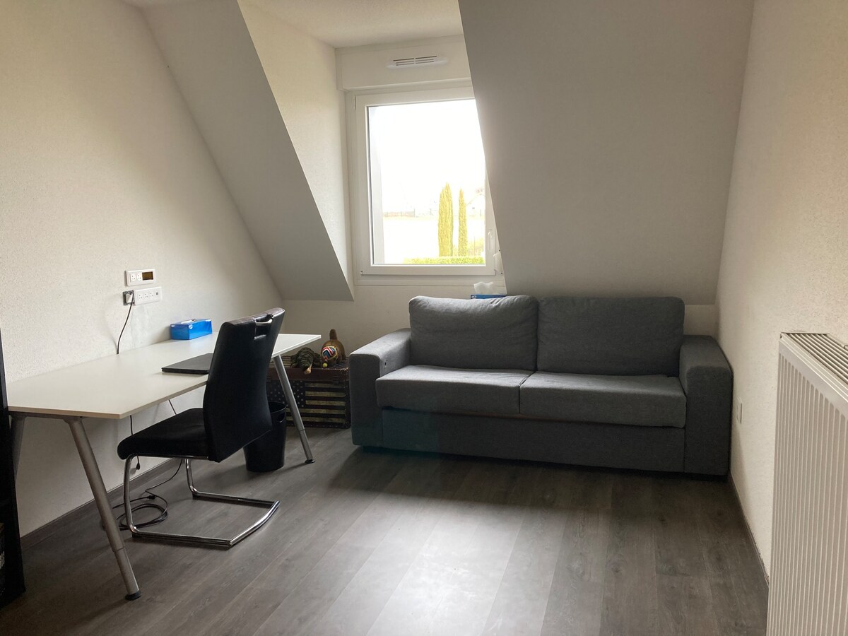 아늑하고 편안한 스튜디오에서 여러분을 맞이하게 되어 기쁩니다. 올비스하임에 위치한 이곳은 알자스를 방문하기 위한 A4와 가깝습니다. 스튜디오는 간이 주방이 있는 메인 룸(20m2)과 세탁기, 샤워기, 화장실이 있는 욕실(8m2)로 구성되어 있습니다. 난방은 가격에 포함되며 수건과 신선한 침구도 제공됩니다. 도착하시면 침대가 준비되어 있습니다! 저희 마을에는 대중교통이 없으며 차량이 있어야 한다는 점에 유의하십시오.
