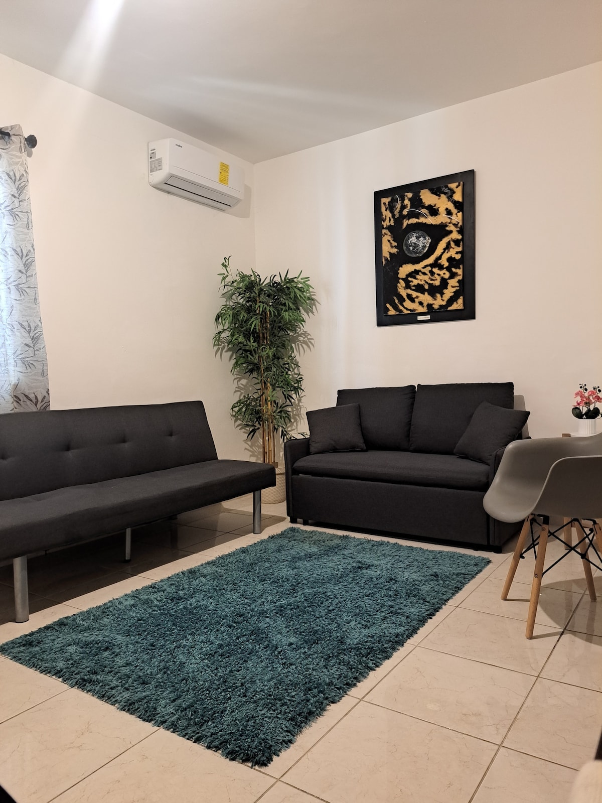 아늑한 독립형 아파트, 침실 1개, 욕실 및 옷장, 엔터테인먼트 공간(32인치 스마트 TV), 독립형 조명 및 USB 포트가 있는 작업 공간. 접이식 2인용 의자. 바비큐 시설이 갖춰진 개방형 테라스, 가스레인지, 야외 의자. 에어컨 완비. 해변에서 15분 거리에 위치. 슈퍼마켓, 세탁소, 대중교통까지 단 2블록 거리에 있습니다. 그릴, 7피트 냉장고, 슬라브 및 주방 용품이 갖춰져 있습니다.