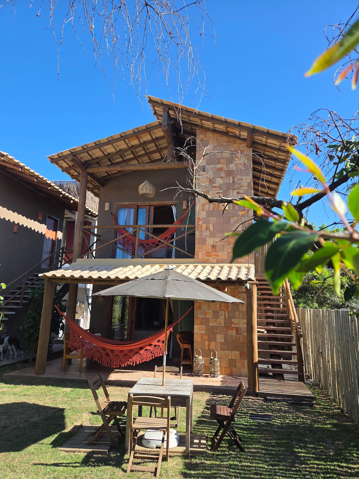 해변과 강에서 150m 거리에 있는 벨하 카라이바 최고의 지점에 있는 코코넛 나무와 캐슈 나무가 가득한 땅에 있는 완전한 집입니다. 80 ㎡ 의 크고 완비된 주방, 거실, 테이블, 사이드 창문, 홈 오피스, 발코니에서 10m 이상의 데크가 있습니다. 스위트룸과 침실에 에어컨이 설치되어 있습니다. 파탁소, 아시아, 아프리카 문화의 소품으로 장식된 매력과 소박함! 방갈로와 타워 하우스의 완전한 프라이버시, 별도 임대 (요청 시 $).