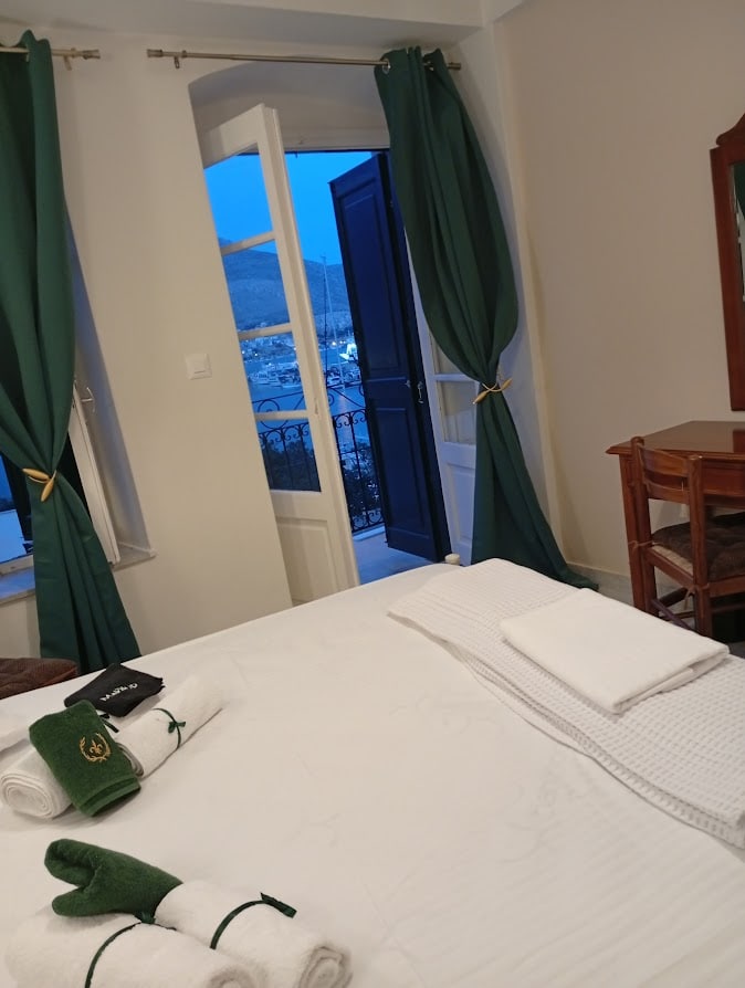 The Ahtarmas Room is a bright, character-filled space that captures the gentle elegance of Archontiko Hotel. The room takes its name from the Ahtarmas boats once used for long voyages and sponge-diving expeditions — vessels built for endurance and exploration. This room overlooks the harbour, where a modern Ahtarmas was moored for years, inspiring us to give the room its name. Today, it offers guests a calm, light-filled space with views that remain connected to the maritime soul of the island.