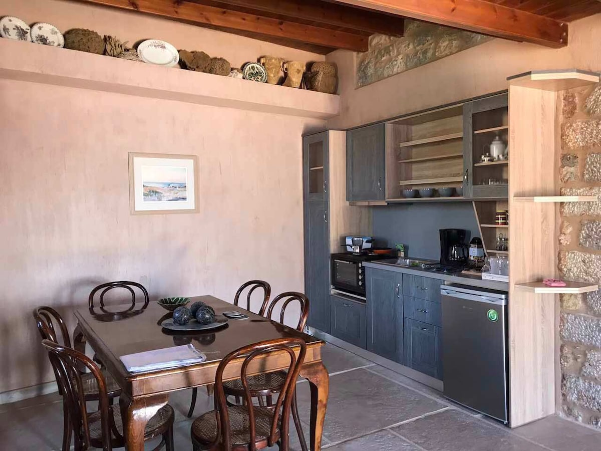 아름다운 칼림노스 섬의 아늑한 휴양지인 골든 비스타에 오신 것을 환영합니다. 창문 너머로 에게해와 매력적인 텔레도스 섬의 숨 막히는 전망을 감상해보세요. 출장이든 즐거움이든, 골든 비스타는 최대 50Mbps 속도를 자랑하는 안정적인 인터넷 연결로 원활한 연결을 보장합니다. 주변 환경의 평온함에 푹 빠져보세요. 골든 비스타에서 섬 휴양지가 기다리고 있습니다!