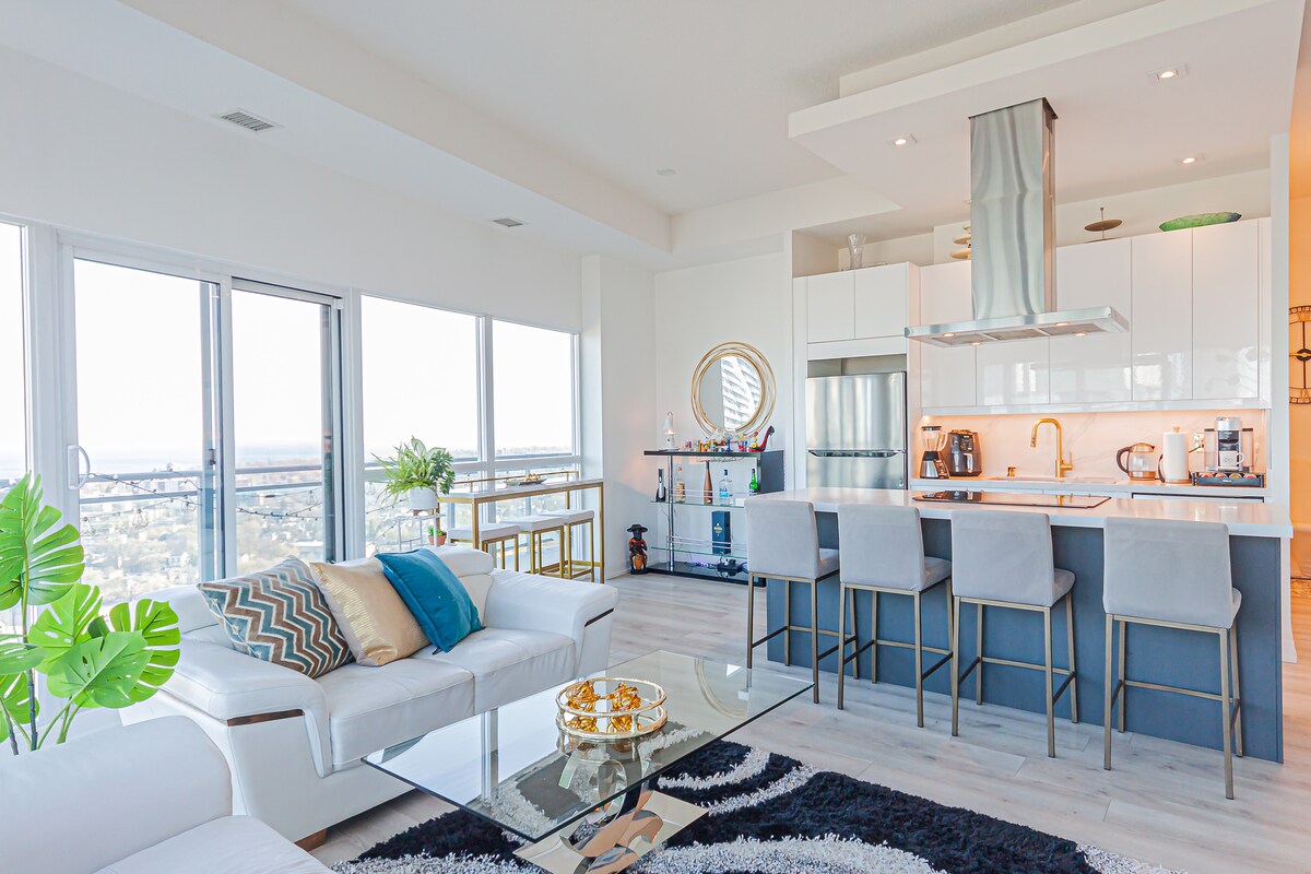 현대적이고 고급스러운 코너 펜트하우스에 오신 것을 환영합니다! 울창한 녹음과 고급스러운 감각으로 세련되게 디자인된 이 밝은 공간은 편안함, 우아함, 그리고 편안한 열대 분위기를 제공합니다. 멋진 도시의 탁 트인 전망을 감상하고 야외 수영장, 온수 욕조, 한증실 사우나 등 프리미엄 편의시설을 즐기며 휴식을 취하세요. 시내까지 차로 단 15분 거리입니다. 바로 앞에 대중교통. 로저스 스타디움까지 차로 10분. 토론토의 활기찬 도심에서 고급스러운 숙박을 원하는 안목 있는 게스트에게 완벽한 숙소