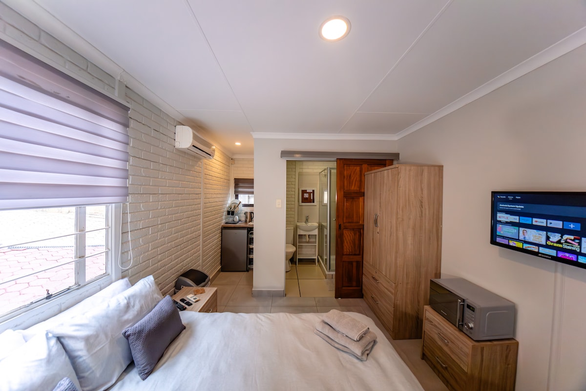 -리틀폴스/웨스트랜드에 위치. -스튜디오 스위트 전용 출입구 -인버터 백업 및 물 백업. -무료 와이파이, 넷플릭스, 디즈니+, 유튜브/뮤직이 설치된 TV 등 - 스위트룸 샤워실, 세면대, 변기. - 더블 침대 1개 및 수면 소파 1개. - 음식 준비 및 세탁을 위한 주방. - 냉장고, 전자레인지, 주전자, 토스터, 다리미, 히터(겨울철 및 추위 시즌), 선풍기, 헤어드라이어, 식기류. - 2km 반경 내에 11개 이상의 인기 패스트푸드 레스토랑 및 클리어워터 몰이 있습니다. 구내에 안전한 무료 주차.