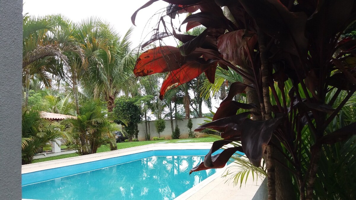 가족, 친구들과 휴식을 취하기에 완벽한 숙소 최대 15명의 게스트 수용🏡 가능 욕실 🛁 3개와 욕실 1개 주차 공간🚗 6개 🏊♀️ 대형 수영장(5x13m, 깊이 1.60m) 🧖♀️건식 사우나 📶 와이파이와 넷플릭스 2개의 정수기가 갖춰진 주방. 🥩바베큐 침구(프리미엄 품질) 침실과 거실에 환풍기가 설치되어 있습니다. 스포츠 낚시 🐟호수 과일 나무가 있는 정원(피탕가, 아세롤라 등) 휴식과 자연과의 교감을 위한 이상적인 환경.