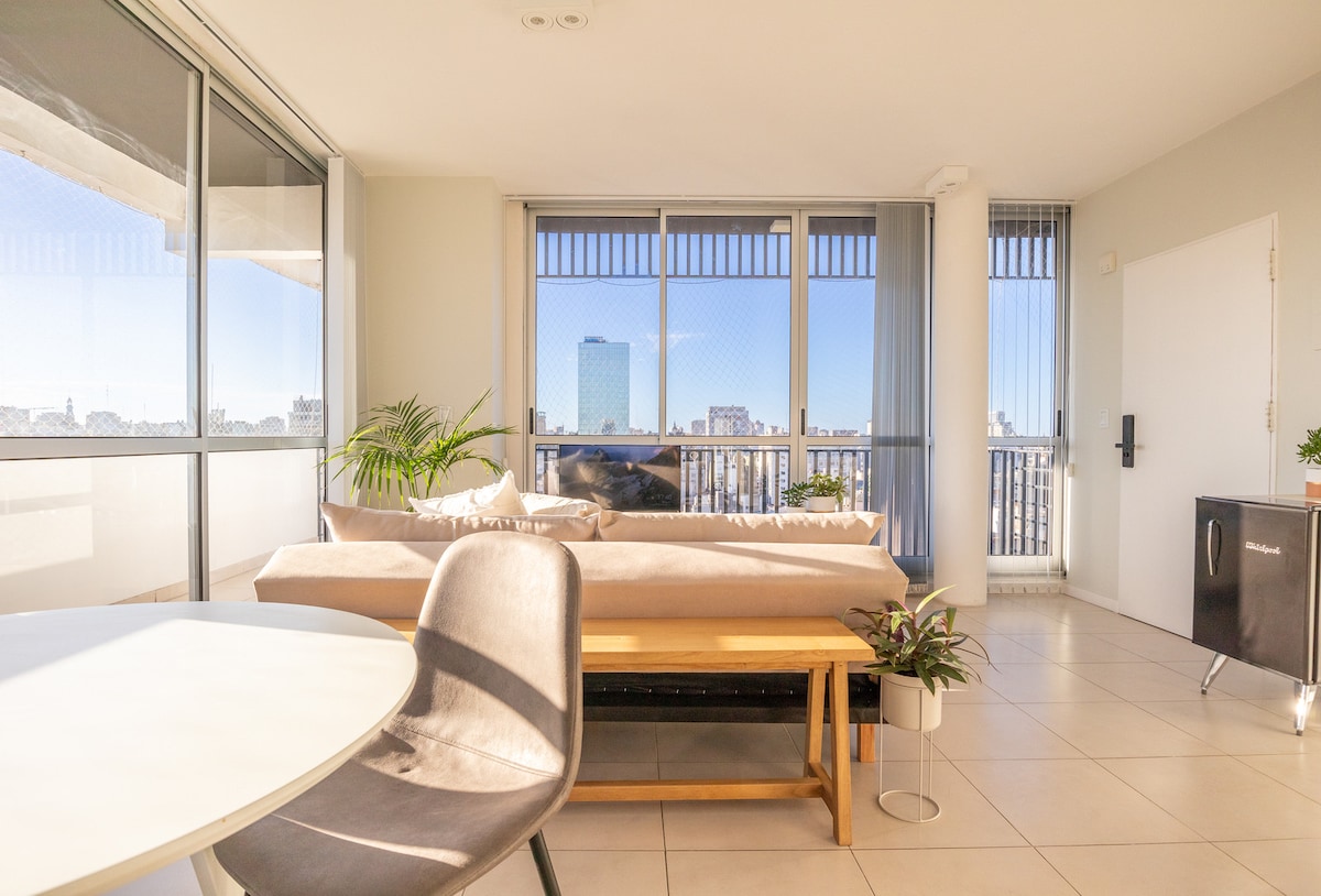 14층 모던한 코너 스튜디오에서 부에노스아이레스 즐기기! 부에노스아이레스의 모든 것을 탐험하고 싶은 여행객에게 완벽한 도심 휴양지입니다. 이 건물은 19층에 옥상 수영장을 갖추고 있어 도시 스카이라인의 파노라마 전망을 감상하며 휴식을 취하기에 이상적입니다(10월 1일부터 3월 21일까지 개방). 게스트는 길 건너편과 블록 코너에 편리하게 위치한 전용 주차장에 차량을 주차할 수 있습니다(추가 비용이 부과됩니다).