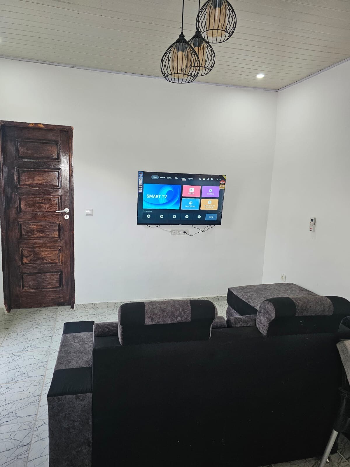 three-room residence 🦅Location: Behind the Brigade de gendarmerie de man route du Lycée. 🔊 모든 편의시설을 갖추고 있습니다. 👉 에어컨이 설치된 객실 👉 무료 와이파이 정형외과용 👉매트리스 구비👉 거실 👉 TV- 운하 + 👉 가구 완비 주방 접근 용이