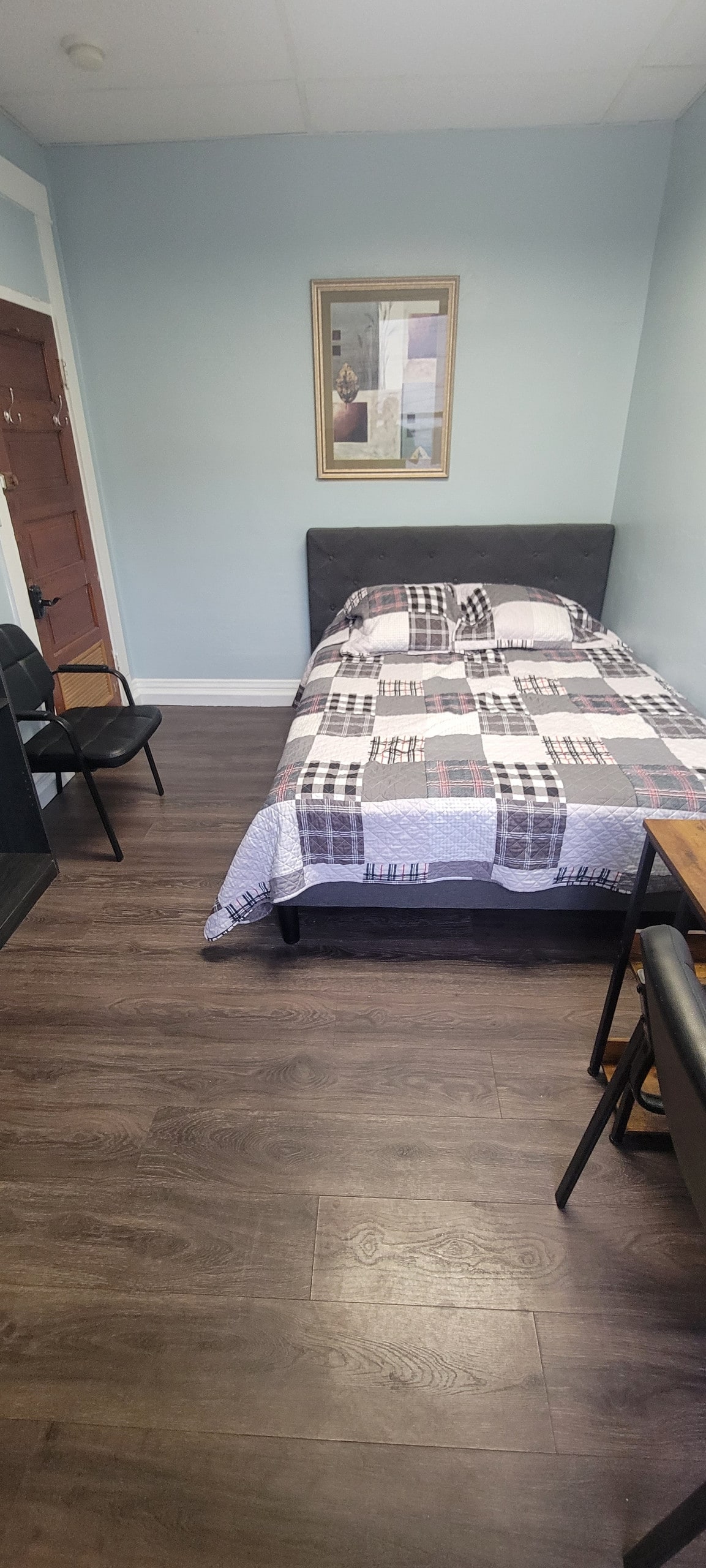 Room number 18 featuring a Queen Sized memory foam mattress with cable TV, complimentary WiFi, A/C, ironing boards, irons, and blow dryers. All rooms have fridges and microwaves. Enjoy easy access to popular shops and restaurants from this charming place to stay.