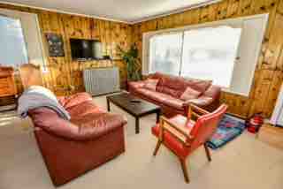This cozy suite will comfortably sleep 8 people with 4 queen beds in 2 separate bedrooms, full kitchen with microwave, refrigerator, stove/oven and a full bathroom. All basic kitchen cutlery is provided. This suite has its own private outdoor front porch for guests to enjoy during any season. 2 flat screen televisions with premium channels and complimentary wifi is provided. This property is part of The Lamplighter Cabins & Suites.