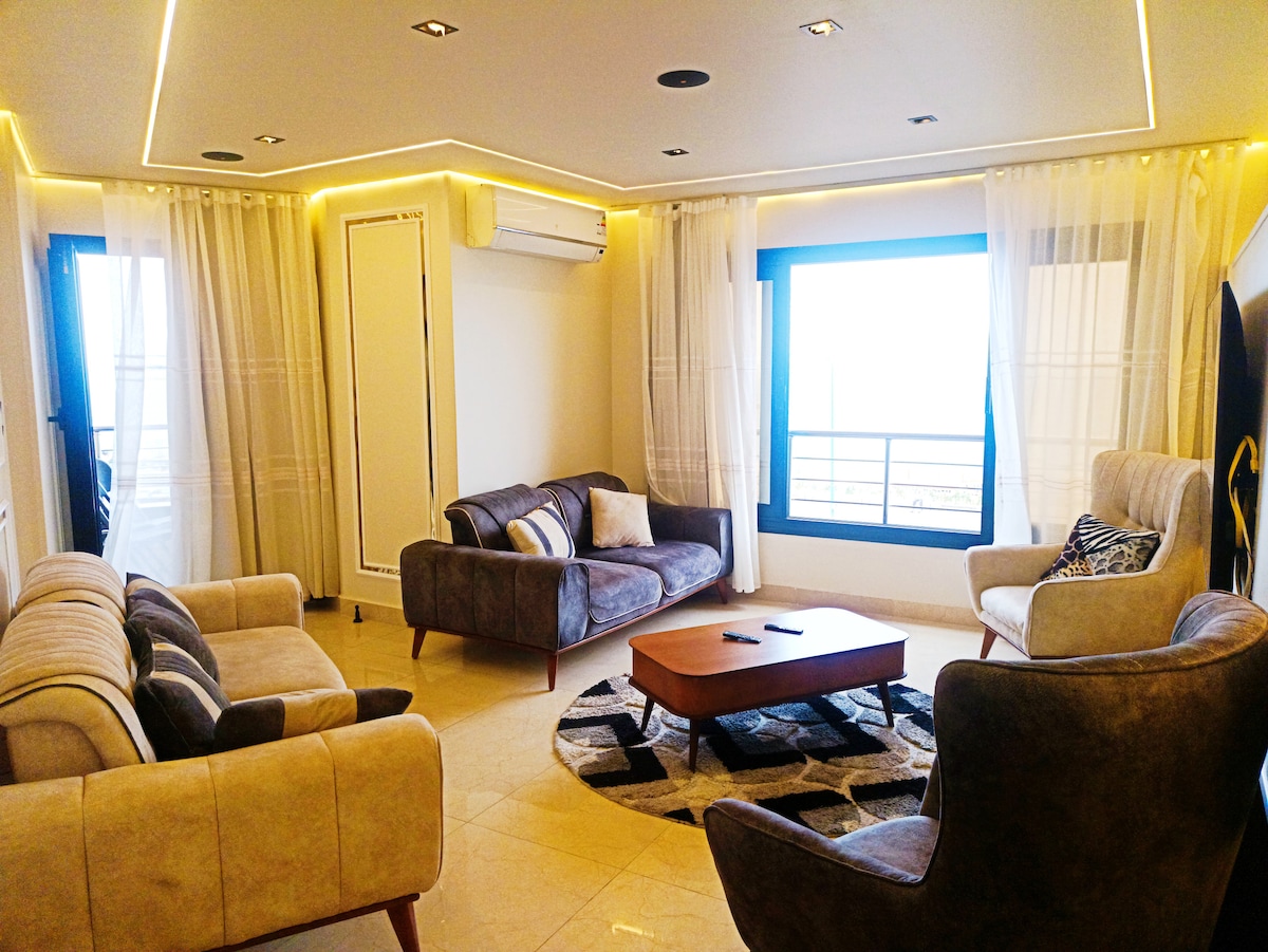 발코니가 있는 에어컨이 완비된 숙소에서 즐거운 시간을 보내세요. 매력적인 바다 전망을 자랑하는 아사프라 럭셔리 콘도는 알렉산드리아에 있습니다. 숙소는 시디 가버 기차역에서 약 8.8km, 알렉산드리아 동물원에서 11km, 콤 엘 쇼카파의 카타콤에서 15km 거리에 있습니다. 무료 와이파이를 이용할 수 있으며, 추가 요금으로 전용 주차장을 이용하실 수 있습니다.
