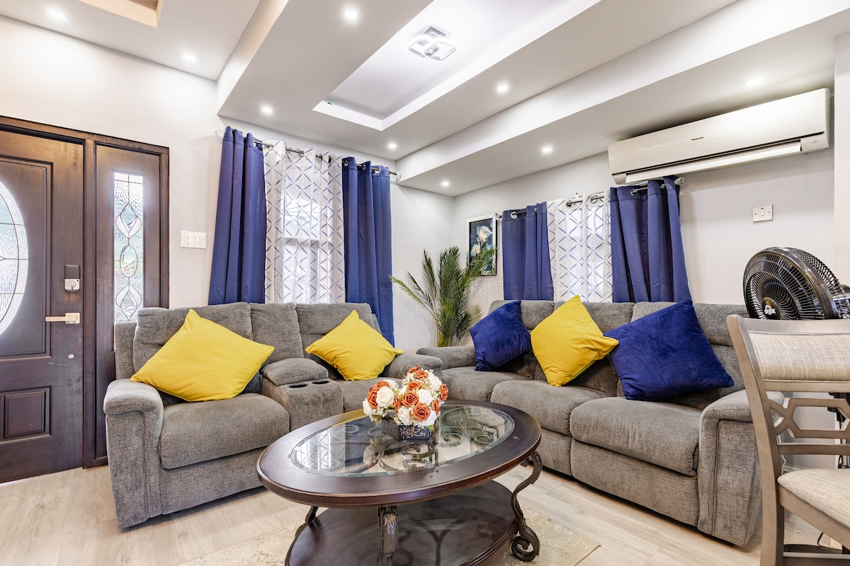 CIsland 체험에 오신 것을🌴 환영합니다 🌴 몬테고베이 로즈홀의 로즈베일 저택 열대 지역의 아늑함을 만끽하세요. • 퀸 베드룸 2개, 소파 베드 2개, 에어 매트리스 • 에어컨, 선풍기, 무료 와이파이, 각 객실에 스마트 TV, 온수, 케이블. • 완비된 주방: 냄비, 커피포트, 밥솥, 에어프라이어 및 모든 주방 필수품 • 세탁기/건조기 • 사무실 공간 •카드, 보드, 도미노 게임. • 망고, 구아바, 바나나 나무가 있는 울창한 마당 해변, 골프, 여행지에서 몇 분 거리에 있는 섬에서 휴식을 즐겨보세요.
