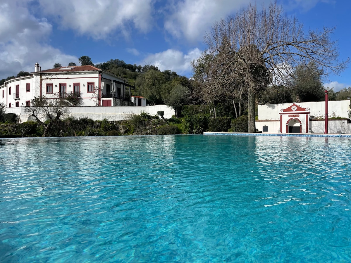Monte inserido numa propriedade de 4 HA, a 1 h de Lisboa. Ideal para famรญlias ou amigos que queiram relaxar na natureza! Casa tรญpica alentejana com cozinha aberta para a sala, wc comum e dois quartos, no piso tรฉrreo. No piso 1, temos uma suite de casal e uma suite twin. Anexo com sala de jogos e churrasco. De Julho a Setembro, zona de relva artificial,com espreguiรงadeiras e chapรฉu-de-sol disponรญveis junto ร casa. Animais de estimaรงรฃo sรฃo bem-vindos, mas o terreno nรฃo รฉ vedado. 93935/AL