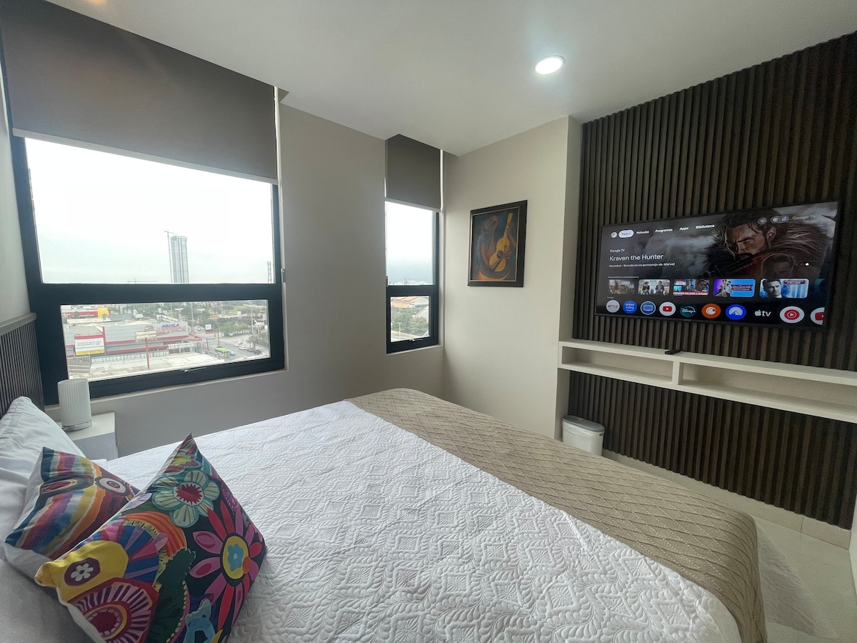 Β‘Descubre el paraΓso en este apartamento frente al Parque Fundidora en Monterrey! Te espera una estancia perfecta con fabulosas amenidades como un gimnasio y zona de BBQ para relajarte y disfrutar al mΓ‘ximo. Nuestras camas sΓΊper cΓ³modas, garantizan un descanso inigualable.