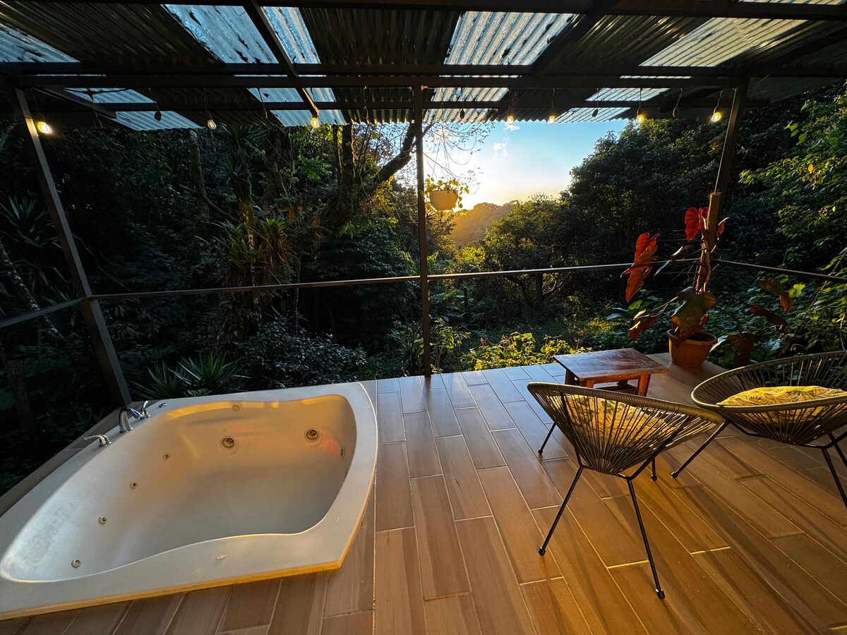 Nambí Monteverde is a private villa that offers a unique experience with stunning sunrises, incredible forest views, and the captivating sounds of birds. Located in Lindora, just 10 minutes from Santa Elena, this fully equipped villa comfortably hosts 4 guests, ensuring a relaxing stay for family or friends. Unwind in the outdoor spa after enjoying Monteverde's top adventure activities, or simply relax on the private balcony with breathtaking mountain views, surrounded by nature.